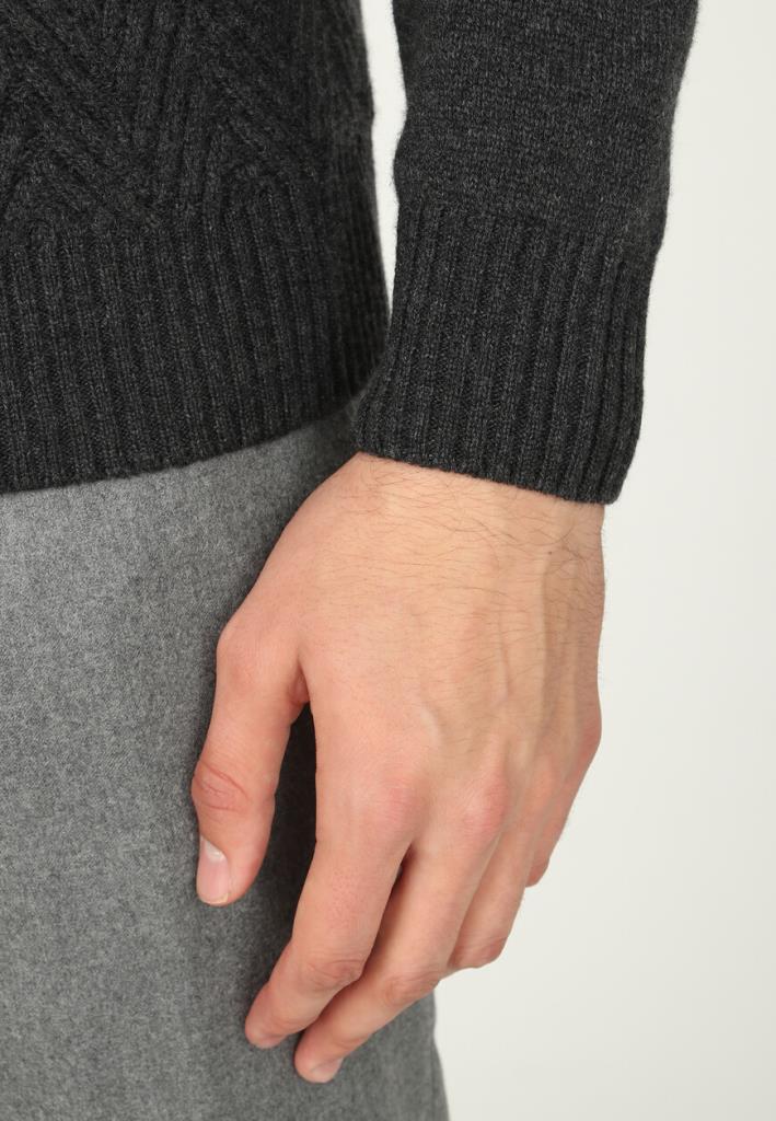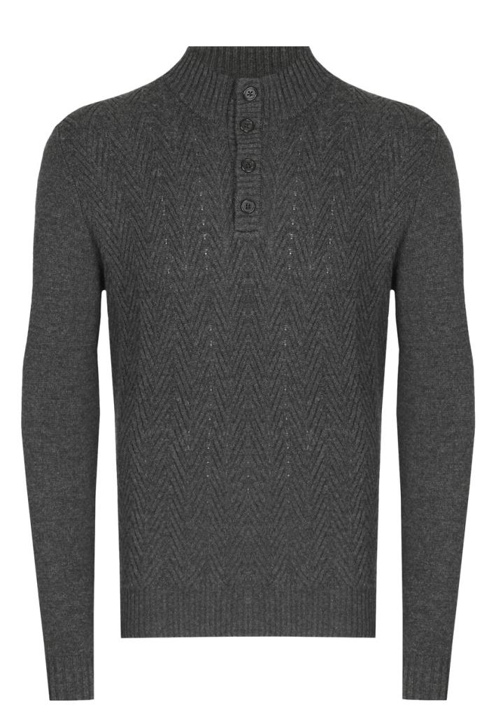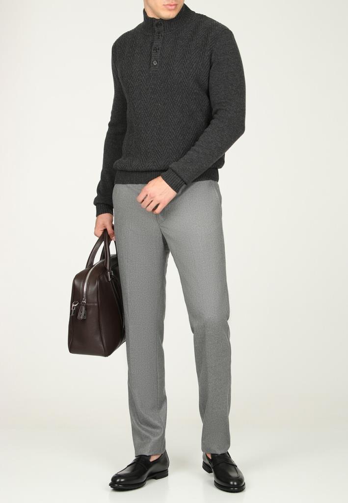 Элегантный джемпер Corneliani с фактурным шевронным орнаментом мастера итальянского модного дома выполнили из мягкой премиальной шерсти и добавили нежный кашемир, чтобы изделие было особенно теплым и более приятным на ощупь. Модель с воротником-стойкой дополнена пуговичной планкой, с помощью которой можно регулировать глубину выреза.