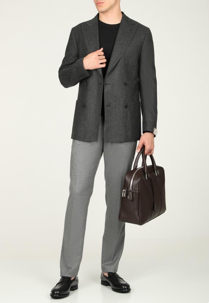 Двубортный пиджак Corneliani благородного серого цвета с меланжевым оттенком безупречно садится по фигуре, моделируя силуэт. Модель с акцентированными плечами и широкими лацканами выполнили из смесовой ткани на основе шерсти, шелка и льна, благодаря чему изделие очень комфортно ощущается на коже в течение целого дня. Широкие накладные карманы добавляют непринужденности модели и делают пиджак уместным и в повседневном гардеробе.
