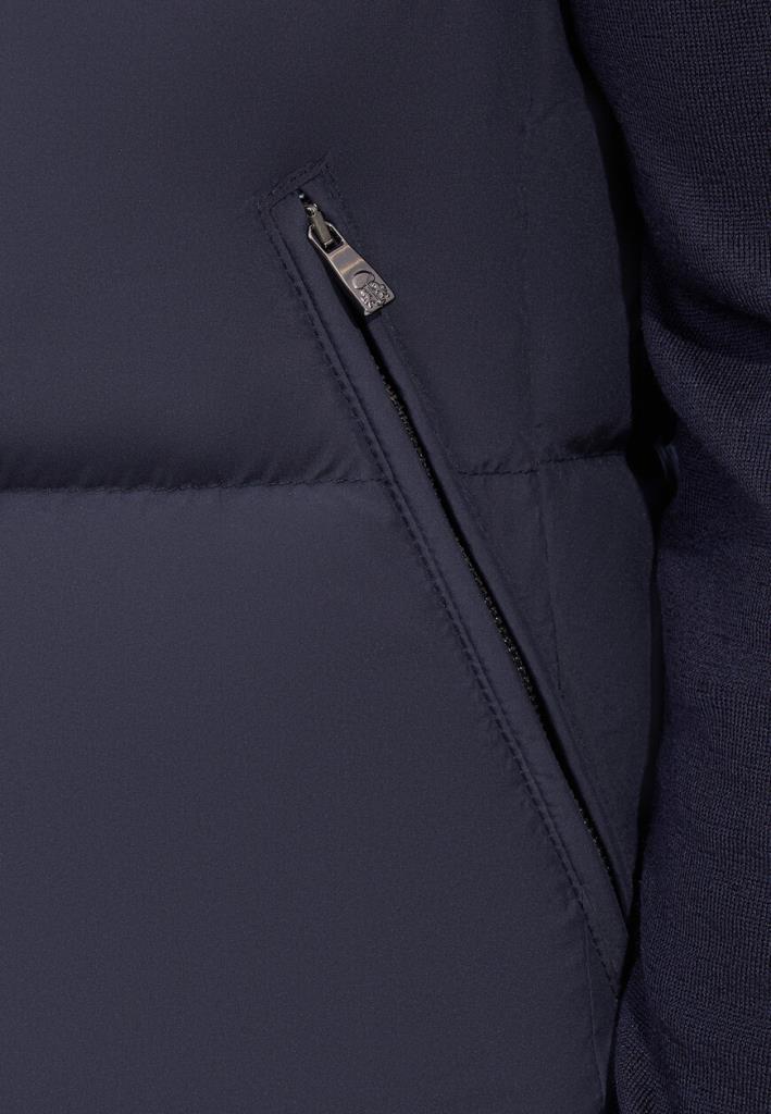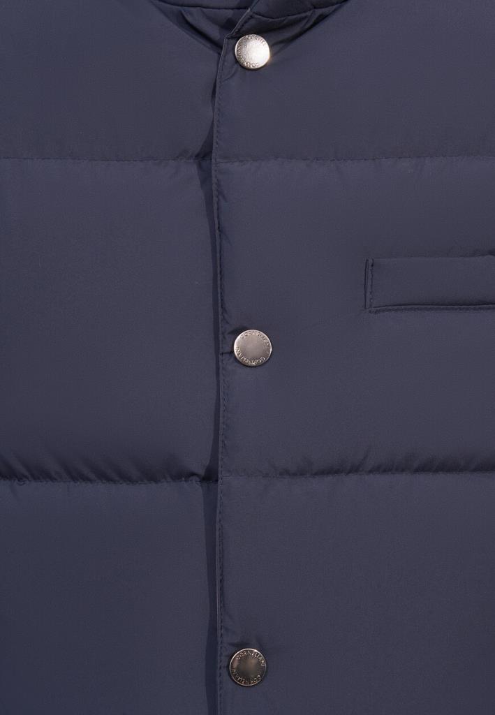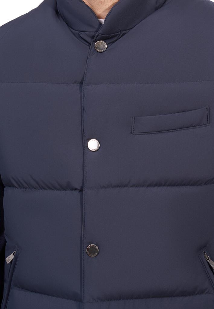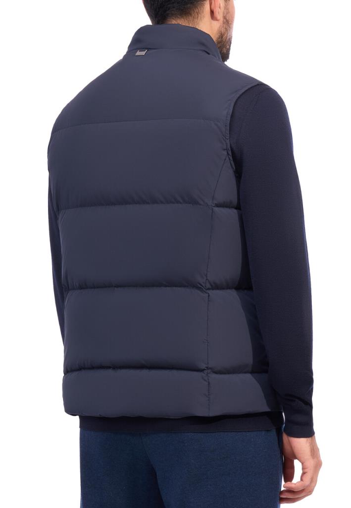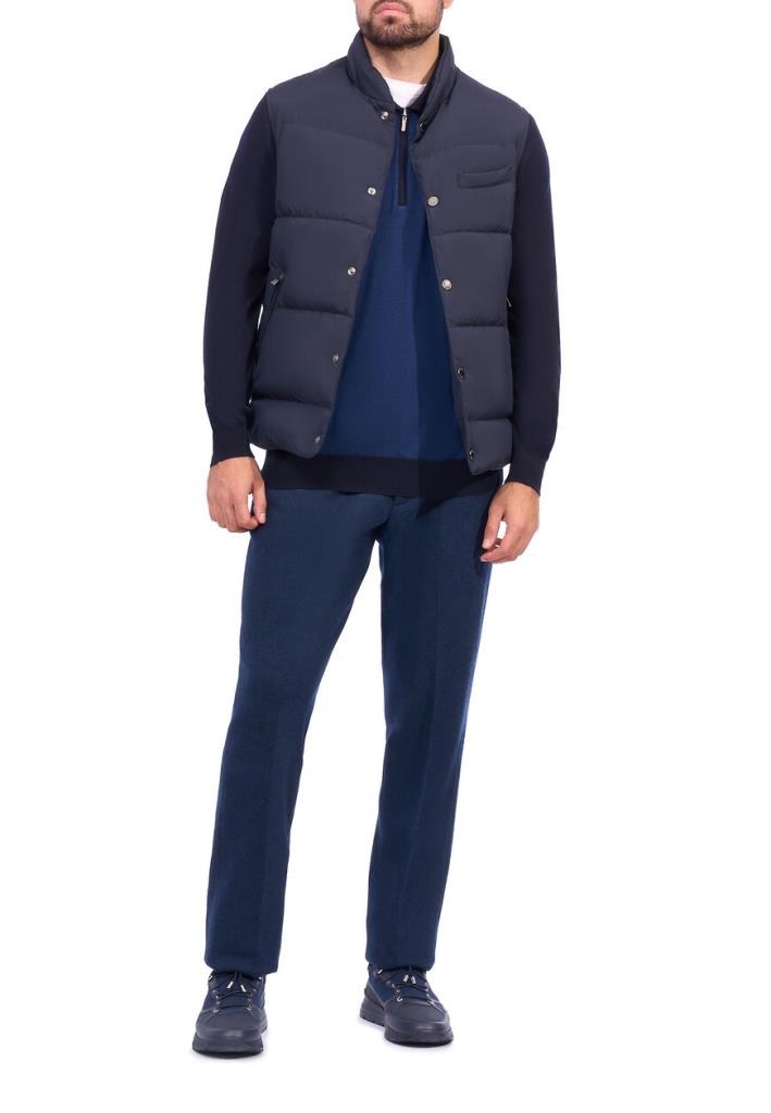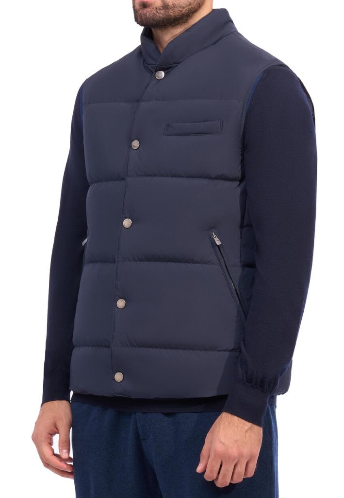 Мужской жилет от Corneliani, итальянской иконы мужской моды, представляет собой апогей роскоши и функциональности. Одежда окрашена в глубокий темно-синий оттенок, который напоминает о спокойствии полуночного неба. Жилет имеет стеганую конструкцию, создающую контролируемый объем и обеспечивающую тепло без чрезмерной вульгарности, что идеально подходит для прохладных дней. Продуманные детали, такие как стильный воротник-стойка, аккуратный нагрудный кармашек и удобные карманы на молнии с боков, подчеркивают функциональность без ущерба для стиля. Кнопки спереди добавляют классическое очарование.