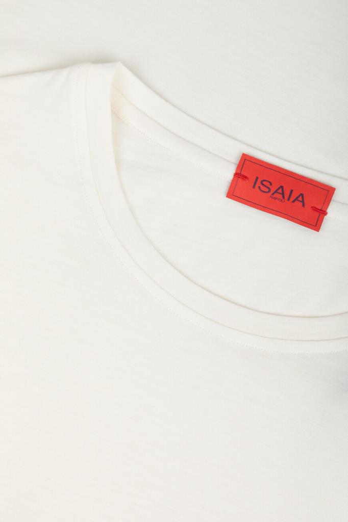 Белый лонгслив прямого силуэта от Isaia. Базовая модель сшита из мягкого трикотажа на основе хлопка и гладкого шёлка с минималистичным декором - вышитой коралловой ветвью спереди снизу в тон. Изделие с круглым вырезом горловины станет хорошей альтернативой футболке в образе с джинсами с эффектом делаве от Billionaire.