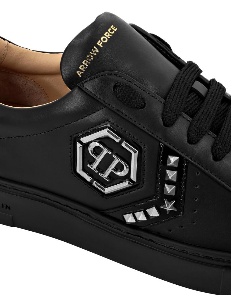 Не пытайтесь оттереть сникерсы – это не дорожная пыль, а дизайнерский ход. Белые сникерсы выглядят так, словно из уже кто-то носил. Поклонникам классики бренд Philipp Plein предлагает мокасины и ботинки из замши. Любителям активного образа жизни – яркие кроссовки-раннеры. Бизнесменам немецкий бренд приготовил новое прочтение оксфордов – все строго, кроме каблука, который украшает металлическая плакетка. И мокасины с черепом и костями в качестве декора. Philipp Plein хочет, чтобы мужчины вели активный образ жизни и крепко стояли на ногах в обуви именитого немецкого бренда!