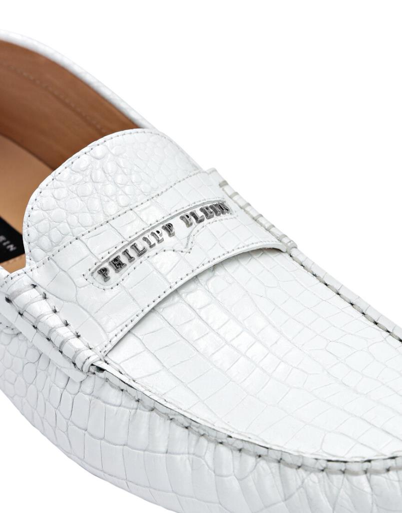 Не пытайтесь оттереть сникерсы – это не дорожная пыль, а дизайнерский ход. Белые сникерсы выглядят так, словно из уже кто-то носил. Поклонникам классики бренд Philipp Plein предлагает мокасины и ботинки из замши. Любителям активного образа жизни – яркие кроссовки-раннеры. Бизнесменам немецкий бренд приготовил новое прочтение оксфордов – все строго, кроме каблука, который украшает металлическая плакетка. И мокасины с черепом и костями в качестве декора. Philipp Plein хочет, чтобы мужчины вели активный образ жизни и крепко стояли на ногах в обуви именитого немецкого бренда!