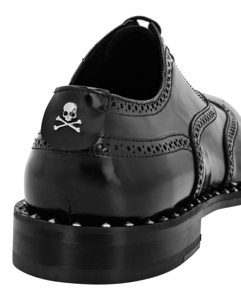 Не пытайтесь оттереть сникерсы – это не дорожная пыль, а дизайнерский ход. Белые сникерсы выглядят так, словно из уже кто-то носил. Поклонникам классики бренд Philipp Plein предлагает мокасины и ботинки из замши. Любителям активного образа жизни – яркие кроссовки-раннеры. Бизнесменам немецкий бренд приготовил новое прочтение оксфордов – все строго, кроме каблука, который украшает металлическая плакетка. И мокасины с черепом и костями в качестве декора. Philipp Plein хочет, чтобы мужчины вели активный образ жизни и крепко стояли на ногах в обуви именитого немецкого бренда!