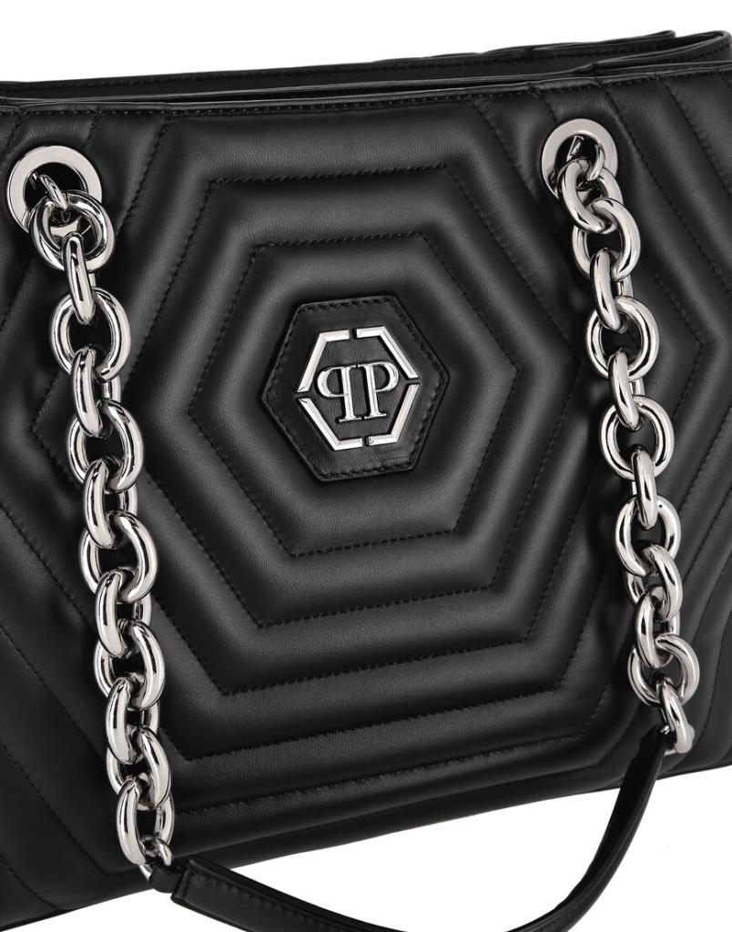 Суперлаконичные по дизайну или невероятно навороченные по декору, женские сумки от Philipp Plein – не просто стильный аксессуар, а вещь, способная сделать образ интересным. Узнаваемый декор, разнообразная цветовая палитра, дизайнерские фишки и широкий диапазон размеров привлекают внимание поклонниц бренда к сумкам, рюкзакам, клатчам от Philipp Plein. Приятно, что команда дизайнеров бренда помнит не только о студентках, нарушительницах устоев, но и о деловых женщинах. В арсенале бренда есть и элегантные строгие модели, сумки Tote, которые явно понравятся бизнес-леди. А сумки в форме плюшевых, кожаных и украшенных стразами медведей не оставят равнодушными никого!