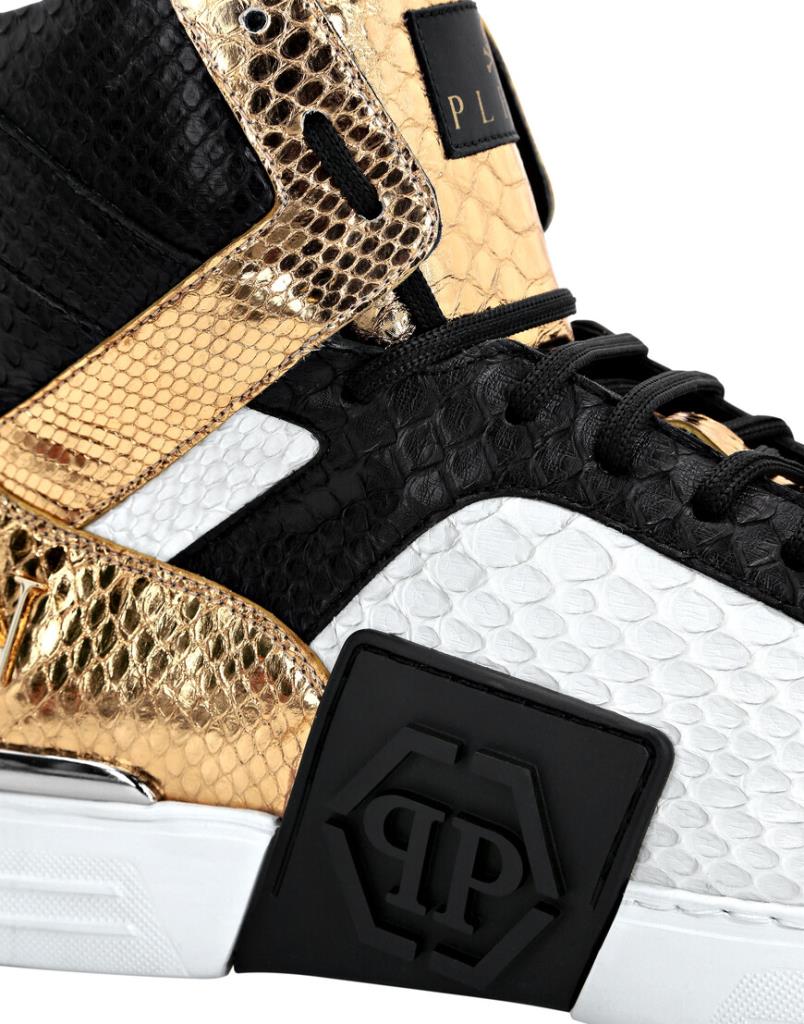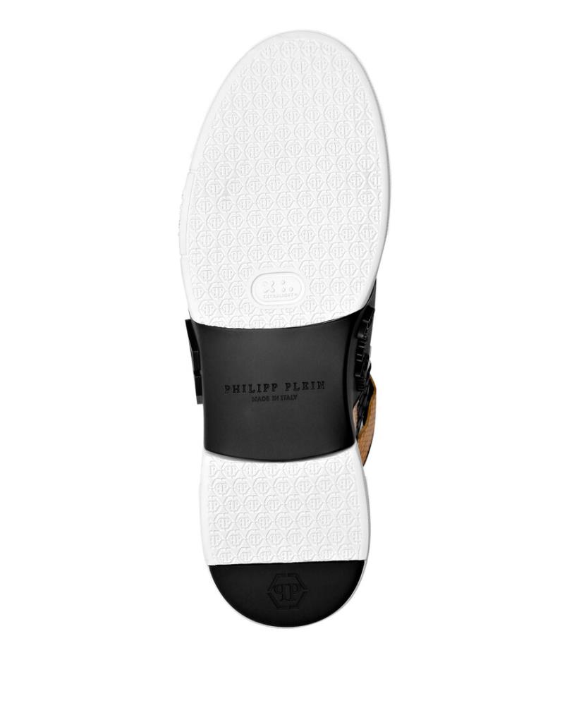 Не пытайтесь оттереть сникерсы – это не дорожная пыль, а дизайнерский ход. Белые сникерсы выглядят так, словно из уже кто-то носил. Поклонникам классики бренд Philipp Plein предлагает мокасины и ботинки из замши. Любителям активного образа жизни – яркие кроссовки-раннеры. Бизнесменам немецкий бренд приготовил новое прочтение оксфордов – все строго, кроме каблука, который украшает металлическая плакетка. И мокасины с черепом и костями в качестве декора. Philipp Plein хочет, чтобы мужчины вели активный образ жизни и крепко стояли на ногах в обуви именитого немецкого бренда!