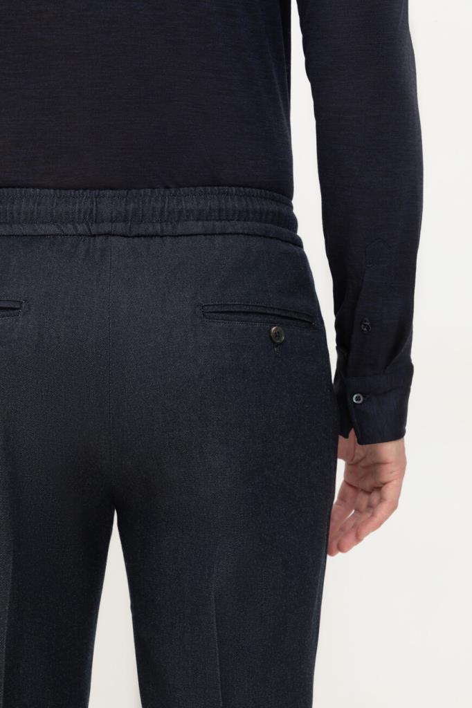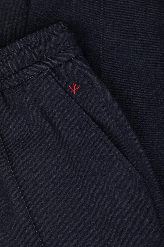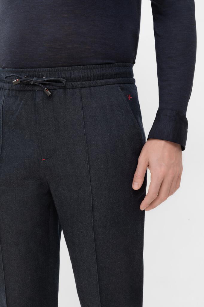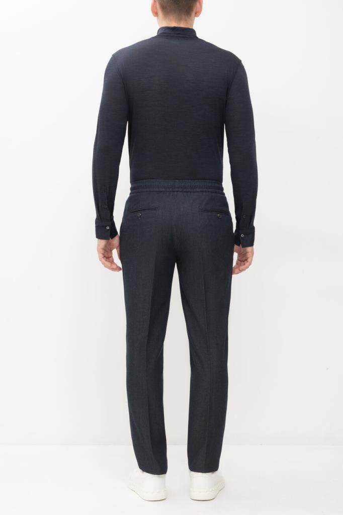 Прямые брюки в спортивном стиле от Isaia. Модель изготовлена на основе хлопка и мягкой шерсти тёмно-синего цвета и оснащена широким эластичным поясом-кулиской для комфортной посадки. На принадлежность изделия Дому указывает вышитая знаковая символика - ярко-красная коралловая ветвь за левым передним карманом. Брюки составят превосходный тандем со свитером в стиле рубашки из той же коллекции бренда.