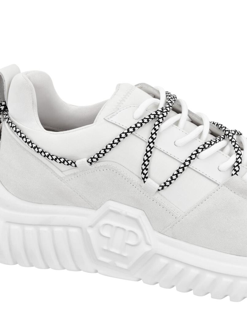 Не пытайтесь оттереть сникерсы – это не дорожная пыль, а дизайнерский ход. Белые сникерсы выглядят так, словно из уже кто-то носил. Поклонникам классики бренд Philipp Plein предлагает мокасины и ботинки из замши. Любителям активного образа жизни – яркие кроссовки-раннеры. Бизнесменам немецкий бренд приготовил новое прочтение оксфордов – все строго, кроме каблука, который украшает металлическая плакетка. И мокасины с черепом и костями в качестве декора. Philipp Plein хочет, чтобы мужчины вели активный образ жизни и крепко стояли на ногах в обуви именитого немецкого бренда!