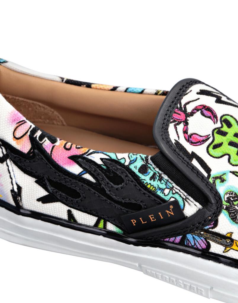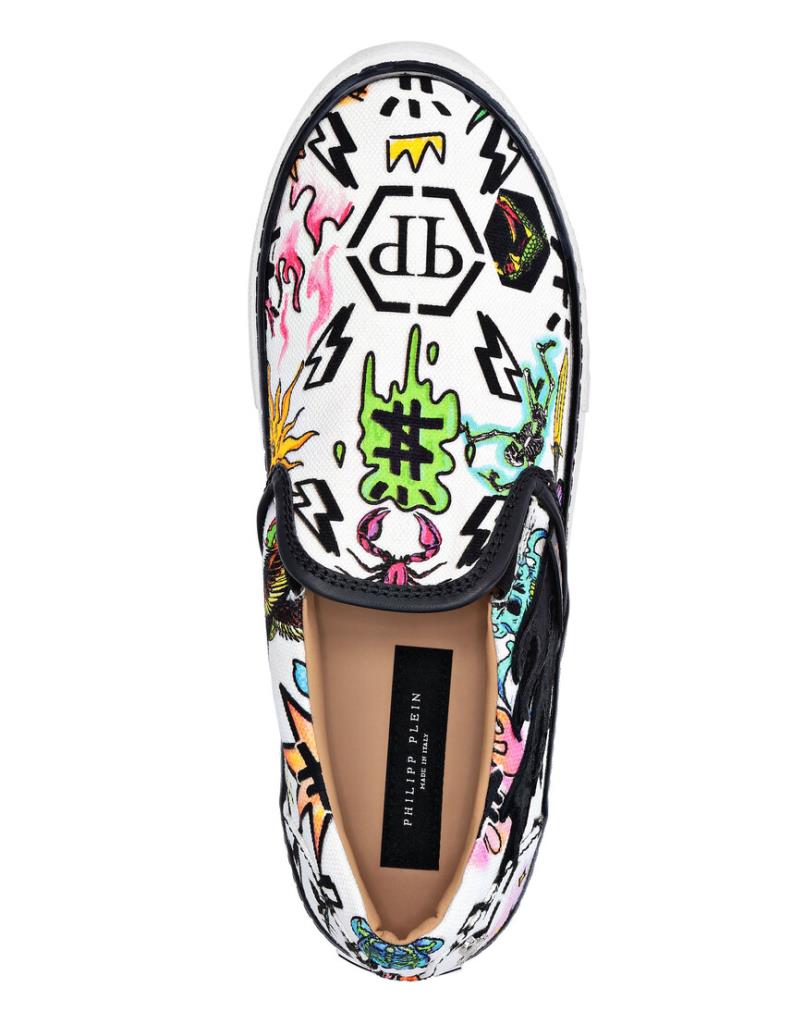 Не пытайтесь оттереть сникерсы – это не дорожная пыль, а дизайнерский ход. Белые сникерсы выглядят так, словно из уже кто-то носил. Поклонникам классики бренд Philipp Plein предлагает мокасины и ботинки из замши. Любителям активного образа жизни – яркие кроссовки-раннеры. Бизнесменам немецкий бренд приготовил новое прочтение оксфордов – все строго, кроме каблука, который украшает металлическая плакетка. И мокасины с черепом и костями в качестве декора. Philipp Plein хочет, чтобы мужчины вели активный образ жизни и крепко стояли на ногах в обуви именитого немецкого бренда!