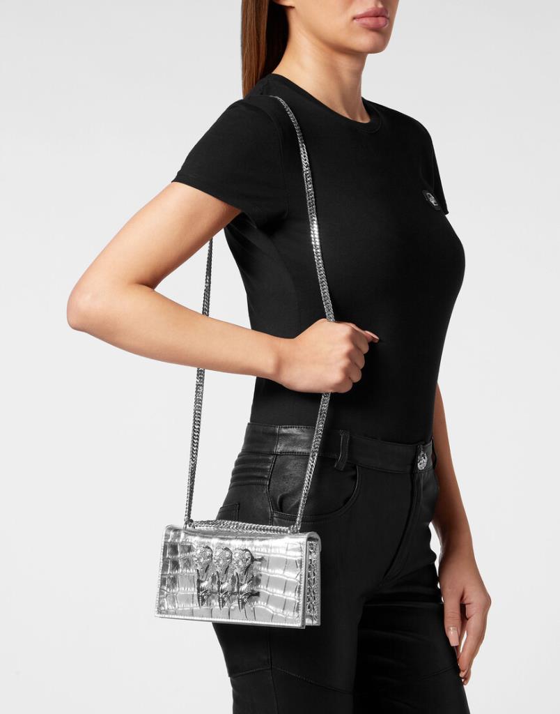 Суперлаконичные по дизайну или невероятно навороченные по декору, женские сумки от Philipp Plein – не просто стильный аксессуар, а вещь, способная сделать образ интересным. Узнаваемый декор, разнообразная цветовая палитра, дизайнерские фишки и широкий диапазон размеров привлекают внимание поклонниц бренда к сумкам, рюкзакам, клатчам от Philipp Plein. Приятно, что команда дизайнеров бренда помнит не только о студентках, нарушительницах устоев, но и о деловых женщинах. В арсенале бренда есть и элегантные строгие модели, сумки Tote, которые явно понравятся бизнес-леди. А сумки в форме плюшевых, кожаных и украшенных стразами медведей не оставят равнодушными никого!