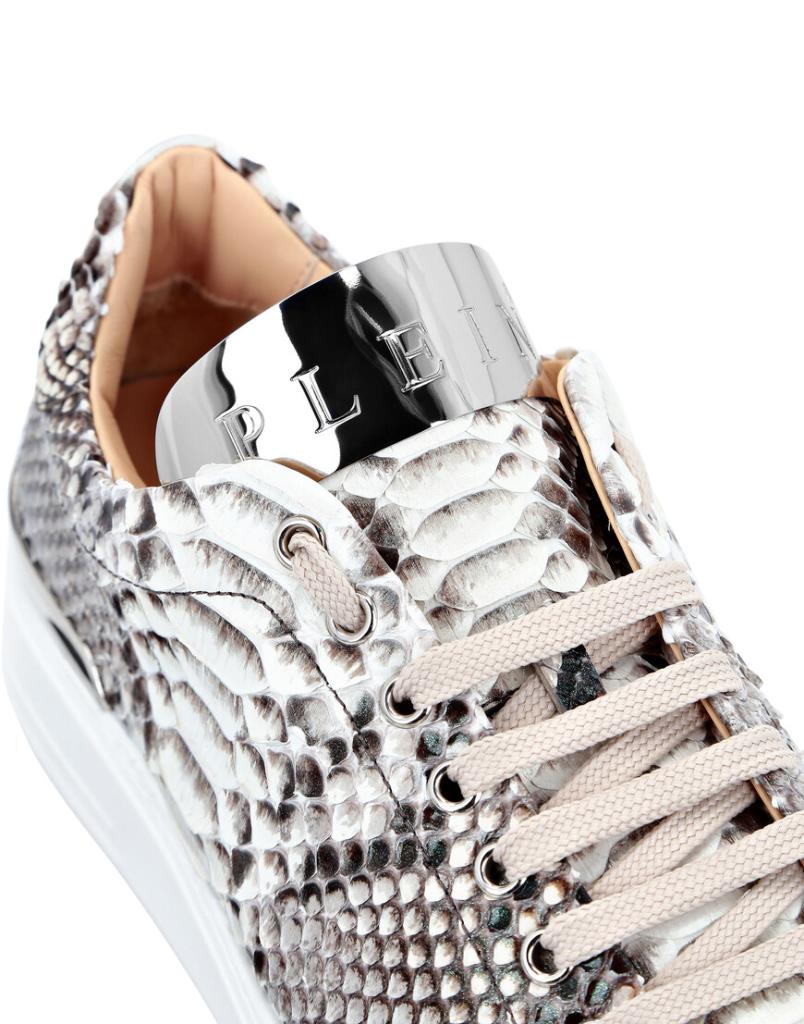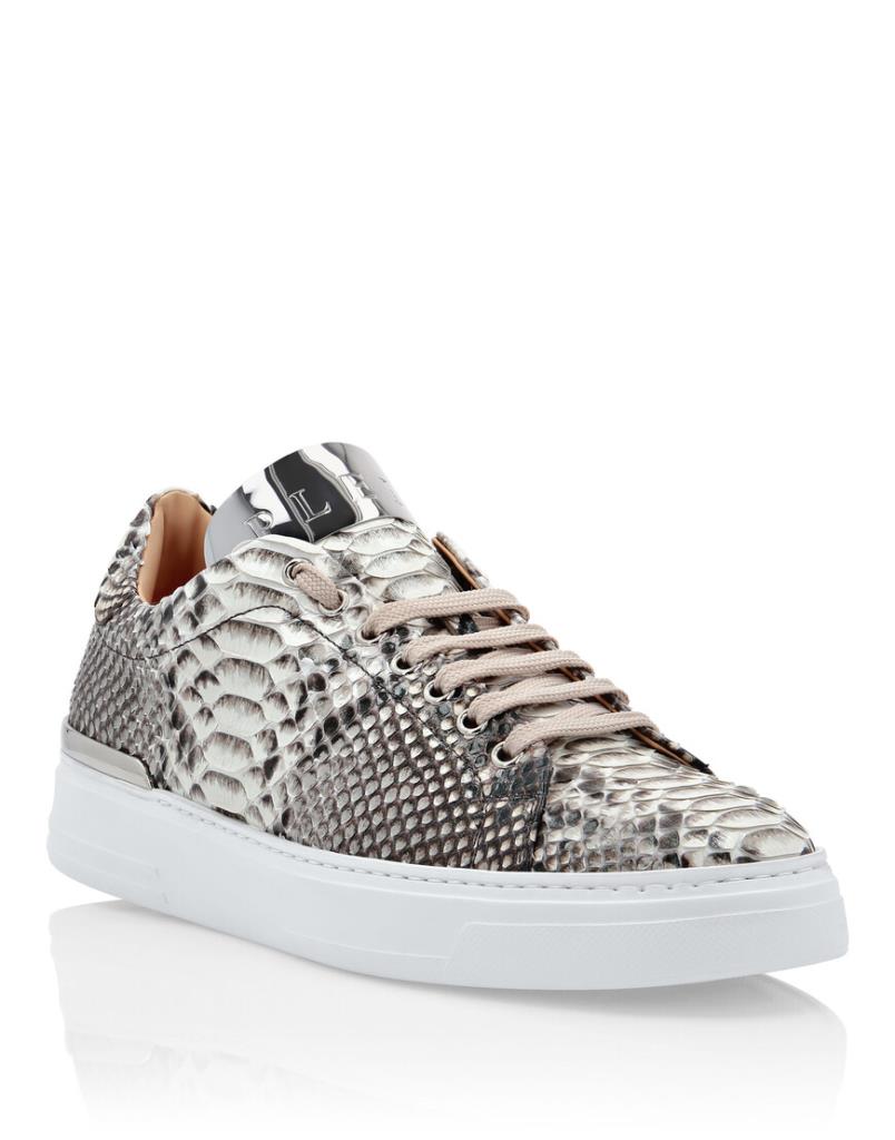 Не пытайтесь оттереть сникерсы – это не дорожная пыль, а дизайнерский ход. Белые сникерсы выглядят так, словно из уже кто-то носил. Поклонникам классики бренд Philipp Plein предлагает мокасины и ботинки из замши. Любителям активного образа жизни – яркие кроссовки-раннеры. Бизнесменам немецкий бренд приготовил новое прочтение оксфордов – все строго, кроме каблука, который украшает металлическая плакетка. И мокасины с черепом и костями в качестве декора. Philipp Plein хочет, чтобы мужчины вели активный образ жизни и крепко стояли на ногах в обуви именитого немецкого бренда!