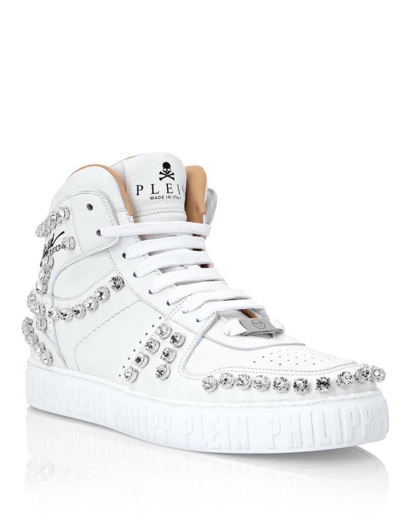 Не пытайтесь оттереть сникерсы – это не дорожная пыль, а дизайнерский ход. Белые сникерсы выглядят так, словно из уже кто-то носил. Поклонникам классики бренд Philipp Plein предлагает мокасины и ботинки из замши. Любителям активного образа жизни – яркие кроссовки-раннеры. Бизнесменам немецкий бренд приготовил новое прочтение оксфордов – все строго, кроме каблука, который украшает металлическая плакетка. И мокасины с черепом и костями в качестве декора. Philipp Plein хочет, чтобы мужчины вели активный образ жизни и крепко стояли на ногах в обуви именитого немецкого бренда!