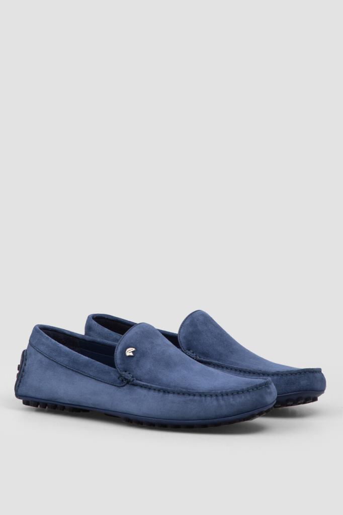 Мокасины Stefano Ricci с закруглённым носком в стиле лоферов. Изделие из бархатистой синей замши позволит Вам выглядеть безупречно на любом мероприятии. Отличительными деталями являются рельефная резиновая подошва с шипами-восьмигранниками, обеспечивающая комфорт, защитная кожаная накладка на пятке и деталь в виде культовой головы орла, изготовленная из серебристого металла, на союзке. Удобная пара внесёт в образ завершающий акцентный штрих.