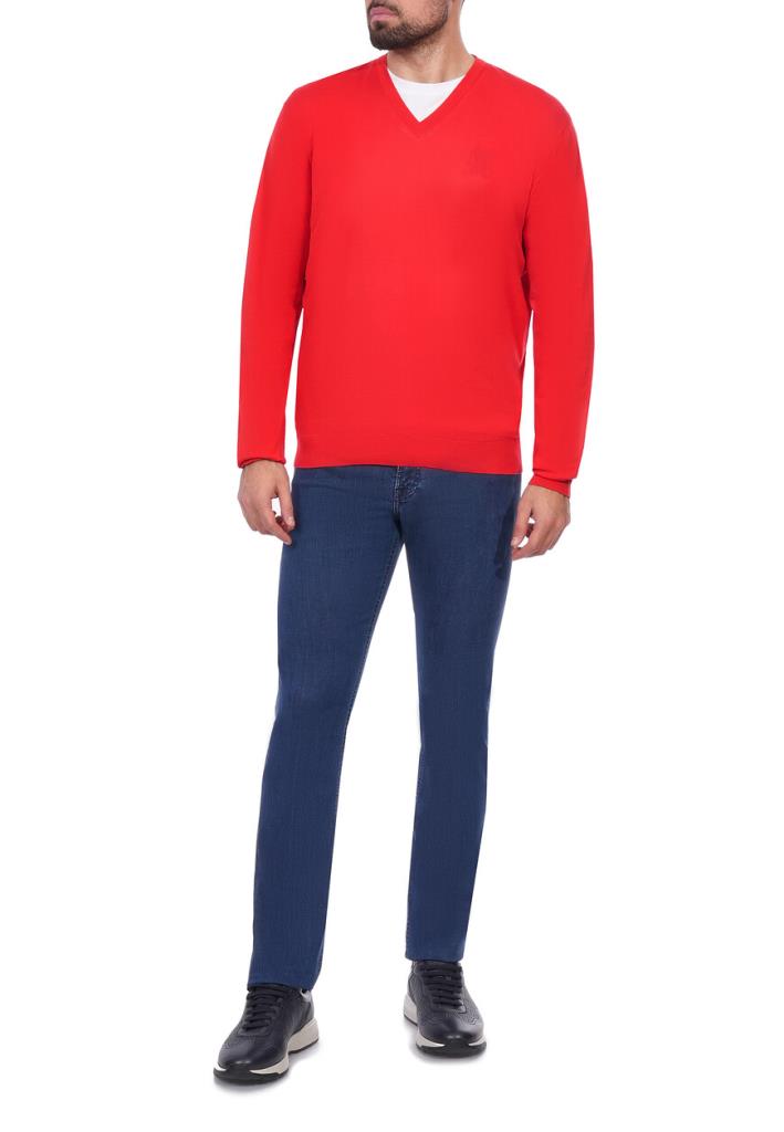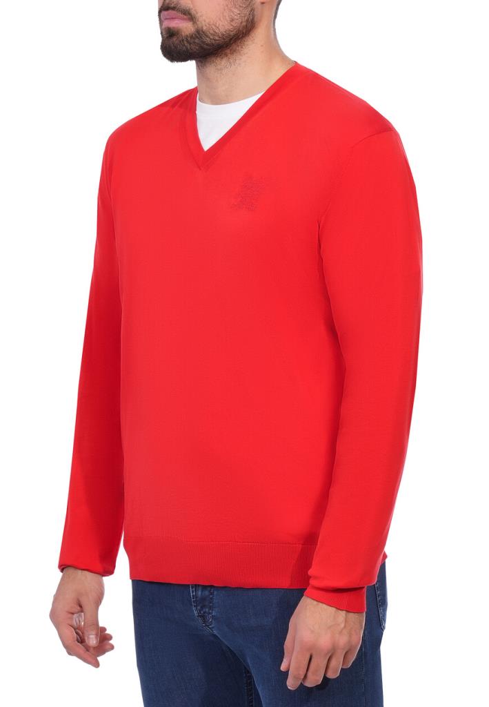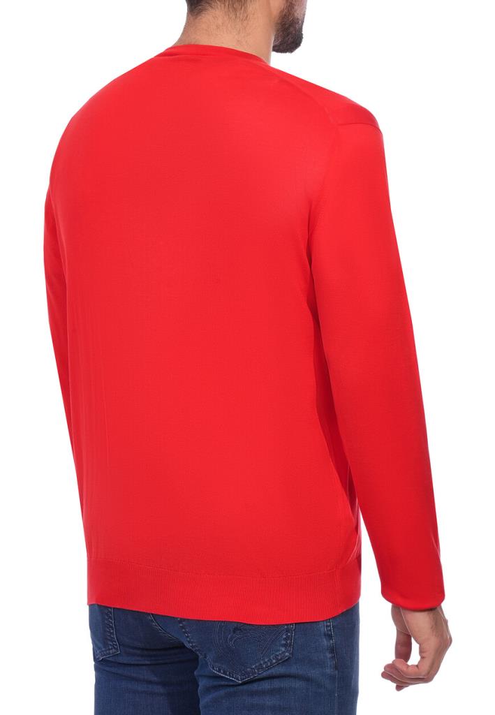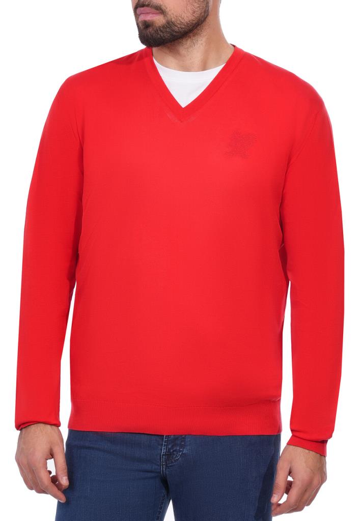 Пуловер Stefano Ricci в ярком красном оттенке представляет собой классический образец мужского гардероба с акцентом на качество и внимание к деталям. Изделие выполнено из высококачественного трикотажного полотна с тонким плетением, что обеспечивает легкость и воздухопроницаемость ткани. V-образный вырез аккуратно окантован эластичным трикотажным бейкой для сохранения формы и долговечности изделия. Плечевые швы выполнены с особой точностью с использованием плоских швов, что предотвращает натирание и придает изделию аккуратный вид. Рукава пуловера имеют прямой крой и заканчиваются трикотажными манжетами в рубчик, которые плотно прилегают к запястьям и обеспечивают оптимальную посадку. Нижний край изделия также обработан широкой резинкой в рубчик, что создает идеальный силуэт и позволяет пуловеру сохранять форму даже при активном использовании. Особым акцентом выступает вышитый логотип в виде орла, расположенный на груди, который выполнен с ювелирной точностью и подчеркивает фирменный стиль Stefano Ricci. Этот красный пуловер идеально подойдет для создания элегантного повседневного образа. Комбинируйте его с темно-синими джинсами или серыми шерстяными брюками для контраста. Для более формального стиля добавьте светлую рубашку с воротником, виднеющимся из-под V-образного выреза, и завершите образ кожаными лоферами или ботинками. Красный цвет станет выразительным акцентом, поэтому аксессуары должны быть нейтральными: черные или коричневые ремни и минималистичные часы будут идеальными дополнениями.