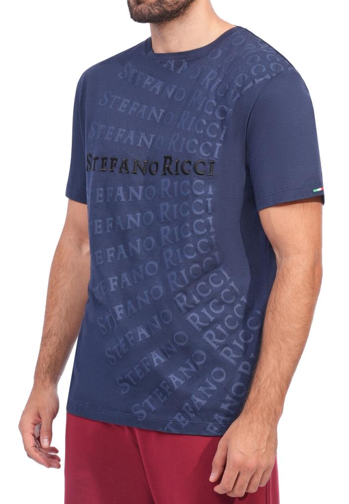 Футболка Stefano Ricci — идеальный выбор для мужчины, который хочет добавить в повседневный гардероб элемент роскоши. Классический темно-синий оттенок служит фоном для динамичного набора повторяющегося имени бренда, расположенного в виде ошеломляющего визуального эха от одной стороны к другой. Тенистая печать логотипа создает глубину и текстуру и подчеркивает премиальность изделия.