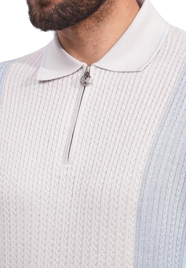 Поло Stefano Ricci источает роскошь и изысканность. Благородная игра светло-голубых и белых оттенков напоминает нежное утреннее небо, отраженное на глади моря, или пастельные тона первых весенних цветов. Вертикальные рельефные вязаные линии создают тонкий, но выразительный узор, который добавляет глубину и текстуру, при этом подчеркивая утонченность кроя. Контрастный воротник поло придает этому изделию классический шарм, а молния на груди вносит современное и практичное ощущение. Мягкая ткань обеспечивает комфорт и превосходную посадку, делая этот предмет гардероба идеальным сочетанием функциональности и элегантности.