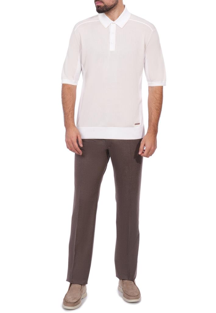 Поло Stefano Ricci в молочно-белом оттенке – это эталон элегантности и утончённости. Модель выполнена из качественного трикотажного полотна премиального состава, обеспечивающего мягкость, комфорт и длительную износостойкость. Воротник-поло выполнен из плотного рельефного материала с аккуратной прострочкой, что позволяет сохранить форму и структуру на протяжении длительного времени. Рукава средней длины заканчиваются гладкими, эластичными манжетами, которые обеспечивают идеальную посадку и подчеркивают мужественные линии рук. Спинка выполнена с минималистичным дизайном и плавными швами на плечах, обеспечивающими свободу движений и комфорт при носке. В нижней части расположены широкие трикотажные вставки, обеспечивающие хорошую посадку и устойчивость на талии. Модель украшена фирменным металлическим логотипом на нижнем крае изделия, подчеркивающим принадлежность к эксклюзивному бренду. Это поло идеально сочетается как с классическими брюками из тонкой шерсти, так и с лёгкими льняными шортами для повседневного образа в стиле smart casual. Дополните его коричневыми кожаными мокасинами или белыми кедами для создания летнего, свежего ансамбля. Акцентируйте внимание на аксессуарах – выбирайте часы с кожаным ремешком или светлый ремень, который будет гармонировать с оттенком поло.