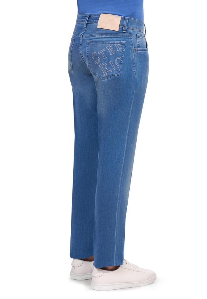 Светло-голубые джинсы Stefano Ricci сочетают в себе премиальное качество и стильный дизайн, отражая мастерство итальянского бренда. Выполненные из первоклассного хлопкового денима с добавлением эластана, они обеспечивают комфортную посадку и свободу движений, оставаясь при этом износостойкими и долговечными. Прямой крой джинс подчеркивает фигуру и создаёт классический силуэт, который подойдет для любого случая. Задний карман украшен вышитым логотипом бренда, что придаёт изделию эксклюзивный вид и добавляет акцент в образ. Пояс с петлями для ремня и аккуратная кожаная нашивка нейтрального бежевого оттенка завершают дизайн и подчеркивают премиальность модели. Легкая выбеленность ткани на бедрах и коленях создаёт эффект мягкой изношенности, который придаёт джинсам современную эстетику. Эти джинсы — идеальный выбор для создания расслабленного, но элегантного образа. Сочетайте их с поло светлых оттенков или хлопковой рубашкой для непринужденного дневного образа. Дополните образ замшевыми мокасинами или лоферами, чтобы подчеркнуть стильный и уверенный характер. Для более повседневного настроения можно добавить кроссовки и минималистичный ремень из натуральной кожи.
