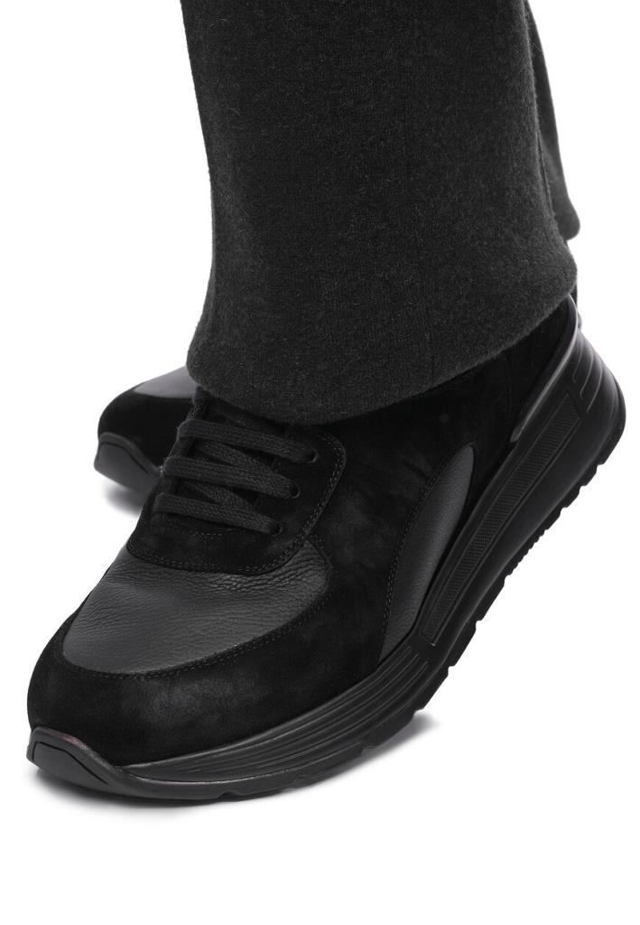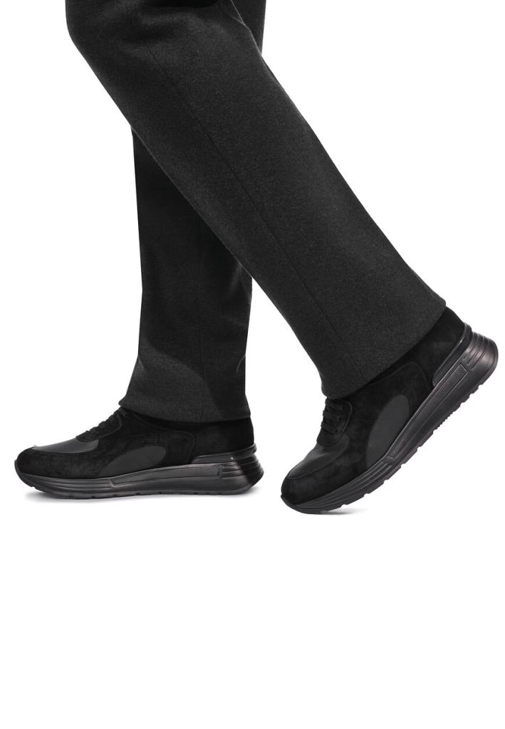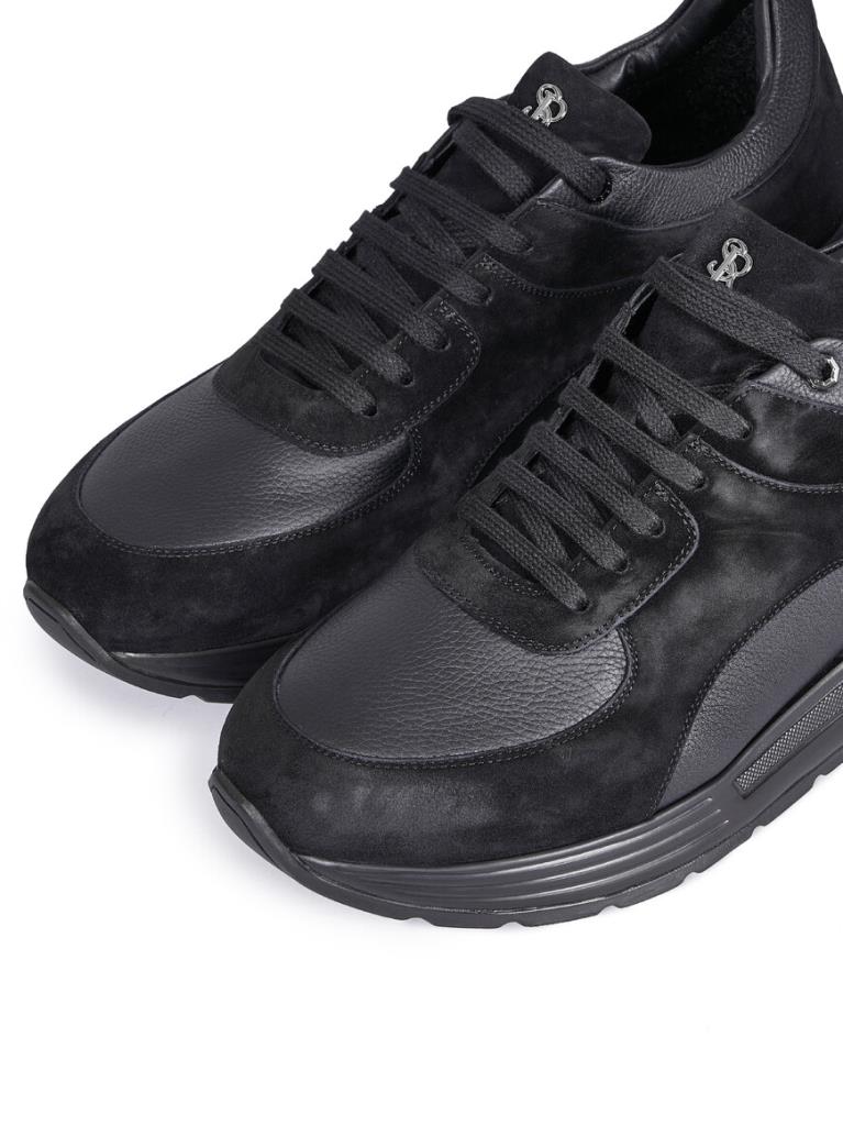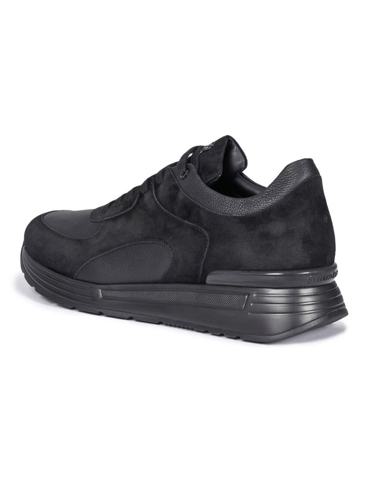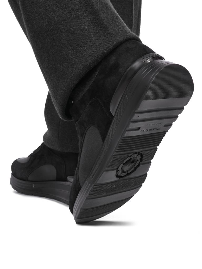 Кроссовки Stefano Ricci отражают современный вкус и преданность исключительному качеству. Сдержанный и элегантный оттенок черного цвета делает их стильным дополнением к любому гардеробу. Модель выполнена из мягкой замши с приятной текстурой на ощупь, которая обеспечивает комфорт на протяжении всего дня. Плавные линии и безупречное качество кожи говорят о премиальной принадлежности этих кроссовок к миру haute couture. Легкая, но прочная подошва обеспечивает не только стойкость на различных поверхностях, но и играет роль в общем дизайне.