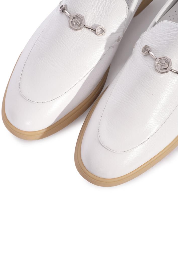 Лоферы Stefano Ricci, изготовленные из высококачественной кожи, обладают нежной фактурой и идеальным белым цветом, который является символом чистоты и утонченности. ДНК бренда Stefano Ricci прослеживается в каждой детали. Металлическая пряжка в виде кольца с замысловатым дизайном - это классический элемент, подчеркивающий престижность и эксклюзивность обуви. Прочная кожаная стелька обеспечивает комфорт и долговечность, а резиновая подошва в цвет слоновой кости придает лоферам привлекательный контраст и делает их идеальными для ежедневной носки. Эти лоферы Stefano Ricci - это инвестиция в стиль, они подчеркнут ваш безупречный вкус и добавят изюминку любому образу. Купить их можно по привлекательной цене с удобной доставкой по всей России.
