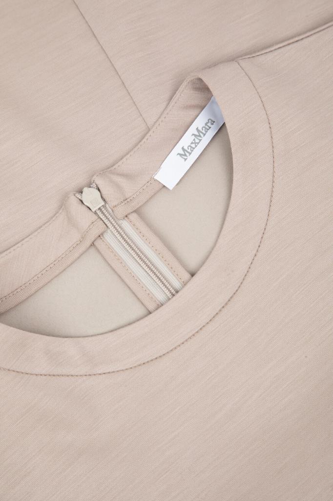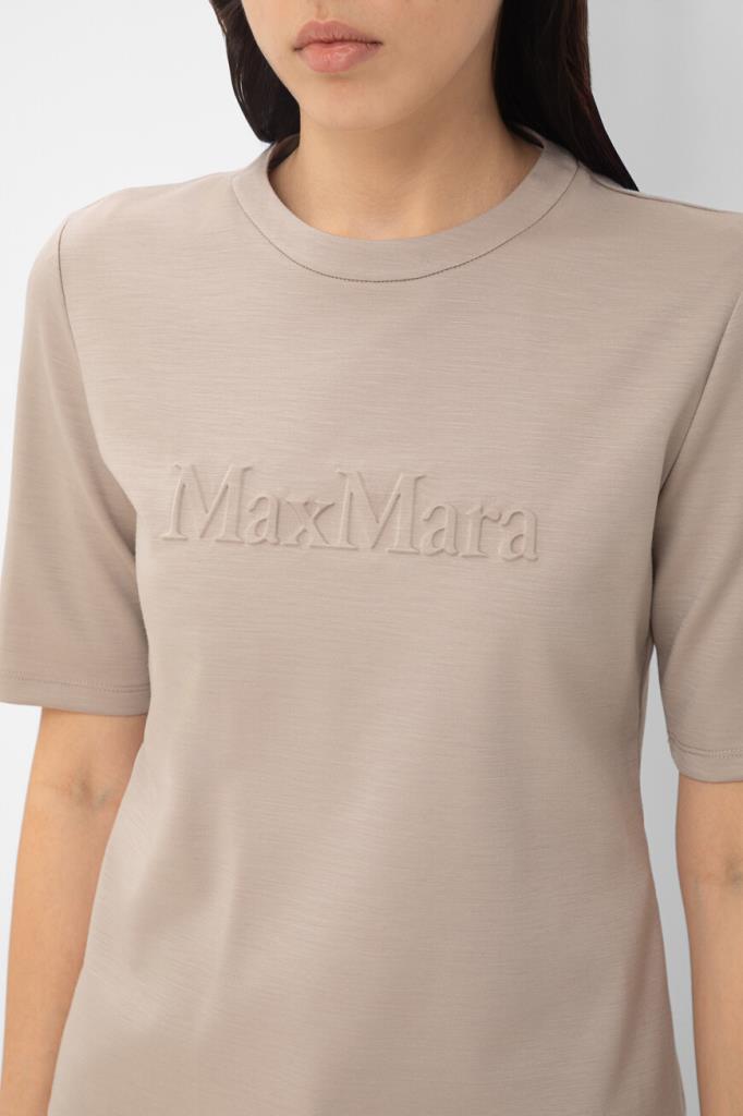 Эта элегантная футболка Max Mara с круглой горловиной отличается лаконичным дизайном. Изысканная деталь – тисненый логотип, выполненный в тон основному материалу, добавляет изделию нотку утонченности. Сзади предусмотрена удобная молния, обеспечивающая комфортное надевание.