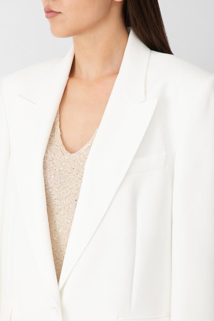 Оцените безупречный стиль и качество однобортного блейзера из кади из коллекции Max Mara Studio. Воротник с заостренными лацканами и акцентные плечи создают элегантный и современный образ. Блейзер идеально сочетается с деловыми брюками из той же коллекции, делая его универсальным выбором для любого случая.
