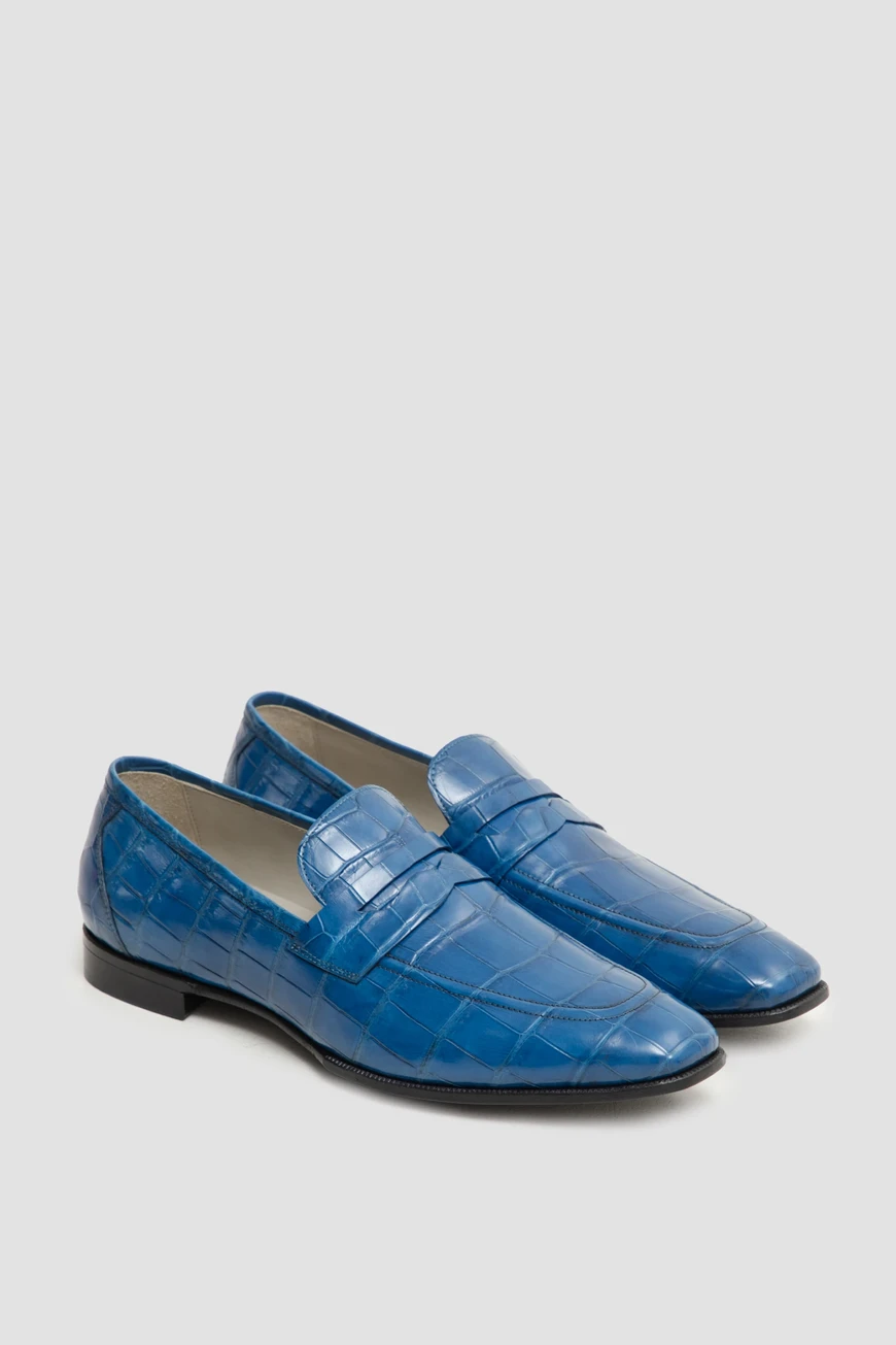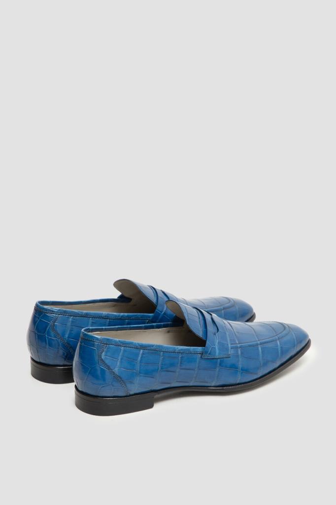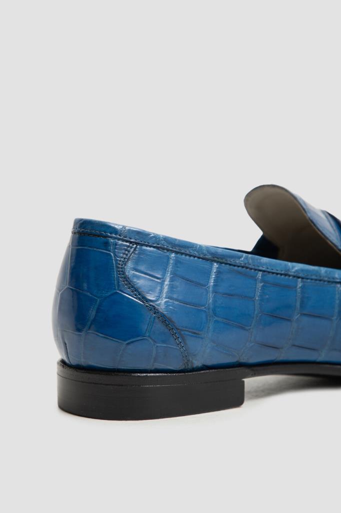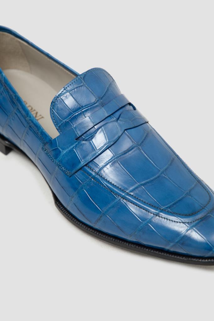 Лоферы Bardini с естественным природным рисунком. Для создания изделия ручной работы выбрана фактурная кожа нильского крокодила светло-синего цвета. Декором выступают классический поперечный ремешок с прорезью на союзке и брендирование на кожаных стельках. Максимальный комфорт обеспечивается мягкой конструкцией обуви и широкой колодкой.