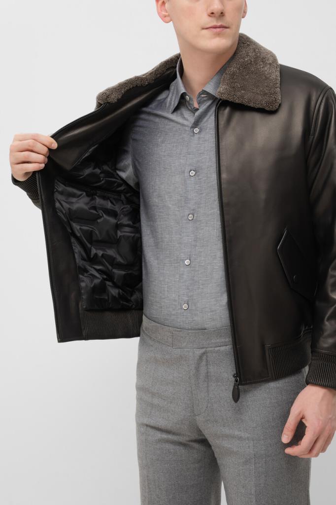 Утеплённая натуральным пухом куртка Bardini с меховым воротником. Для создания повседневной модели прямого силуэта выбрана мягкая кожа. Дополнительный комфорт и удобство в носке обеспечивают широкий эластичный пояс и манжеты-резинки. Практичные боковые карманы с клапанами на клёпке и внутренний прорезной карман на роговой пуговице позволяют иметь всё необходимое под рукой.