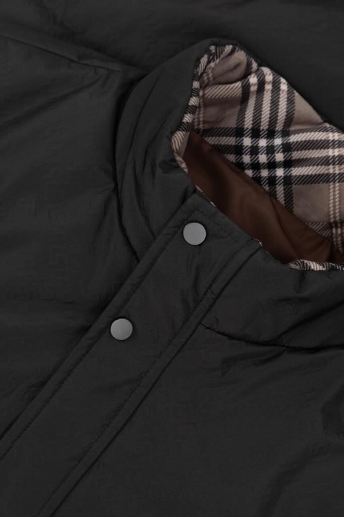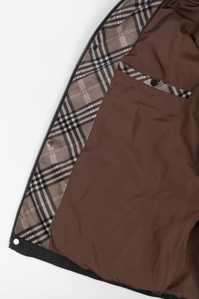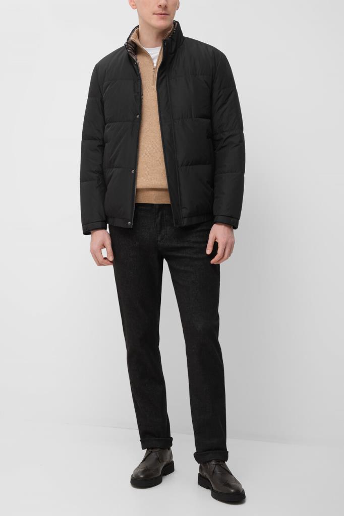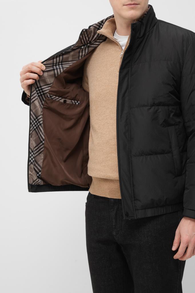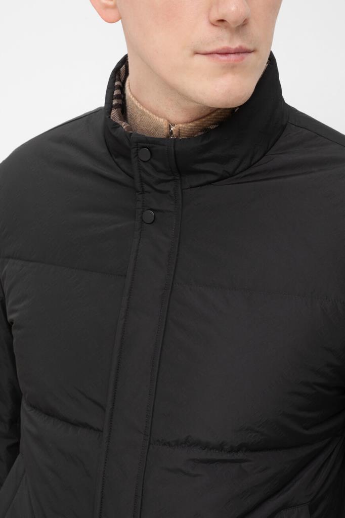 Куртка чёрного цвета от Bardini. Конструкция модели из прочного матового нейлона с горизонтальной стёжкой предполагает прямой силуэт и тёмно-коричневую подкладку из полиэстера с разноцветными клетчатыми вставками. Изделие на потайной молнии и клёпках с планкой надёжно защитит Вас от холода и ветра благодаря наполнителю из натурального пуха.