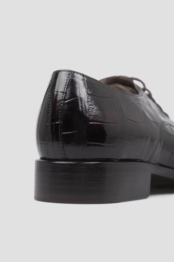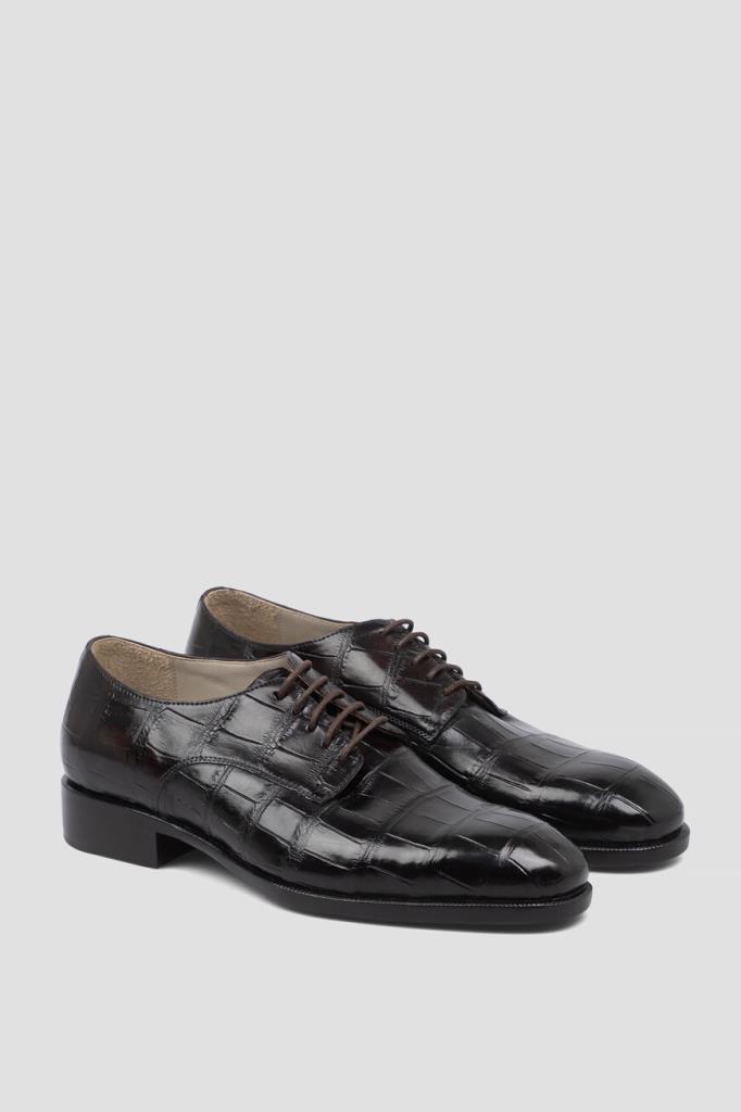 Кожаные дерби Bardini на широком устойчивом каблуке. Конструкция удобной пары с естественным фактурным узором материала предполагает наличие вытянутого округлого носка и традиционной открытой шнуровки. Изделие, установленное на подошву из гладкой кожи телёнка, отличается отсутствием броского декора и внутренней отделкой из кожи и бархатистой замши.