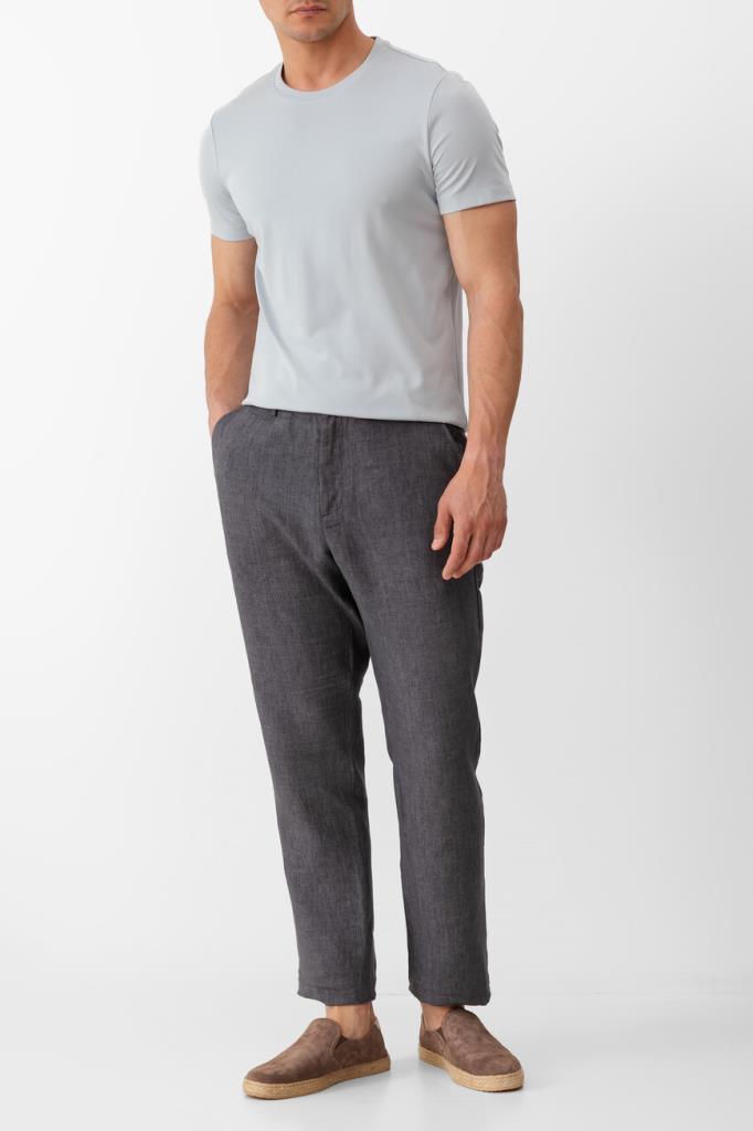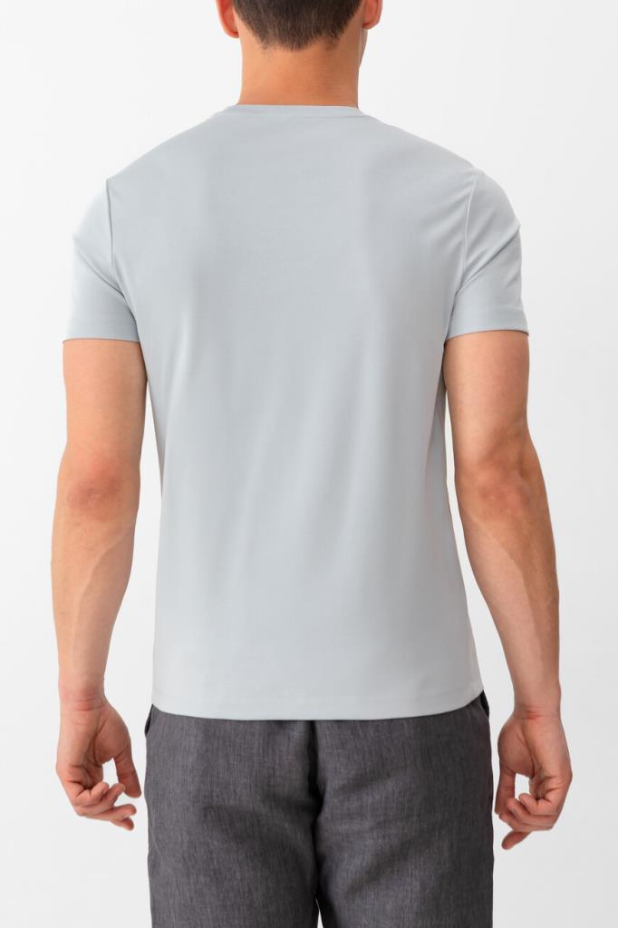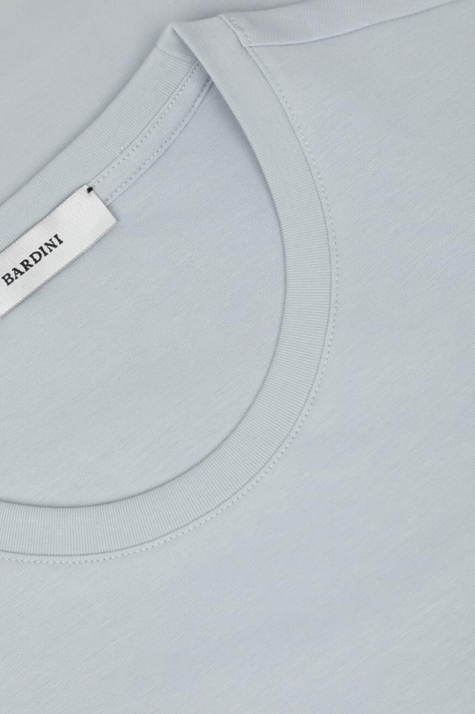 Футболка прямого силуэта от Bardini. Изделие, выполненное из стрейчевого трикотажа на основе хлопка, прочного полиэфира и гладкого шёлка без знакового для бренда декора, окрашено в нейтральный светло-серый оттенок. Круглый вырез горловины подчёркнут резинкой.