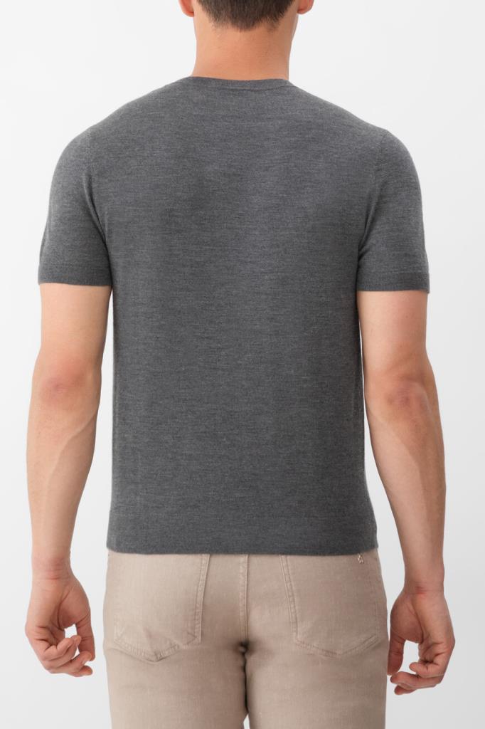 Кашемировая футболка-джемпер чулочной вязки от Bardini. Модель окрашена в серый оттенок и дополнена широким эластичным поясом и манжетами-резинками для оптимальной посадки по фигуре. Изделие без знакового для бренда декора станет основой для создания сезонных casual-образов.