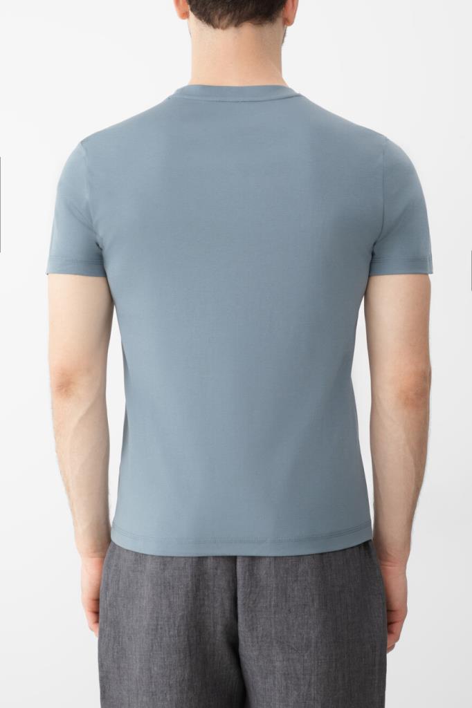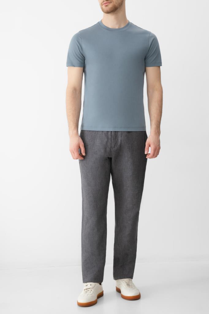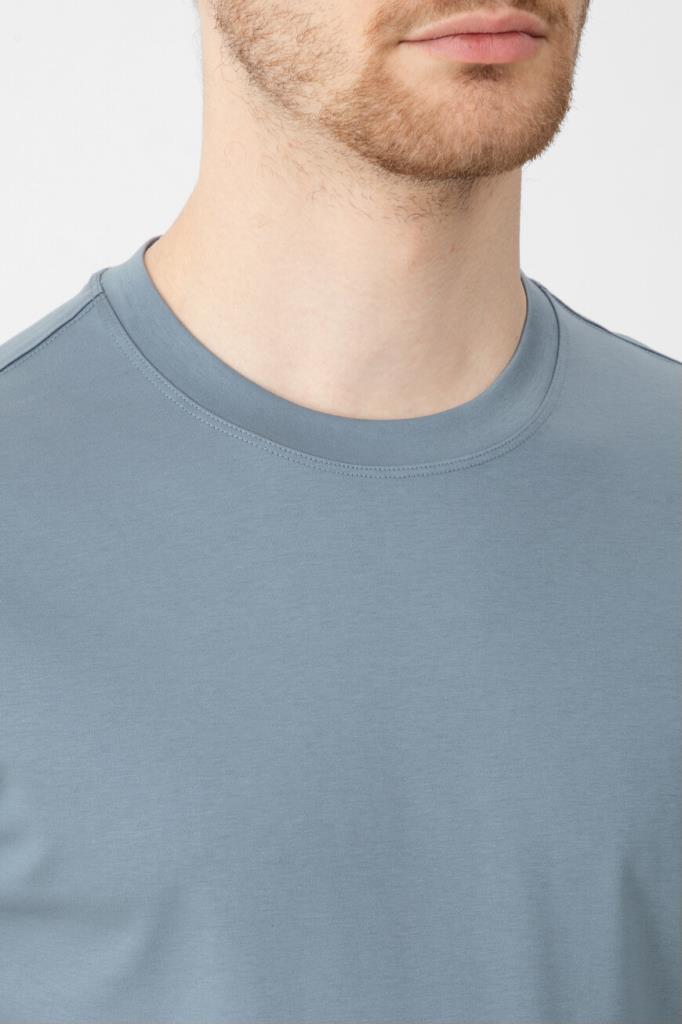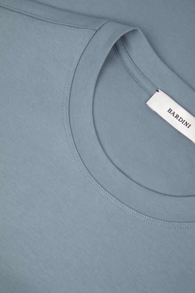 Однотонная футболка из мягкого хлопкового трикотажа от Bardini. Модель из такого тонкого материала обеспечивает эффективную циркуляцию воздуха. Изделие интересно выверенным кроем, наличием круглого выреза горловины, подчёркнутого резинкой, и полным отсутствием декора.
