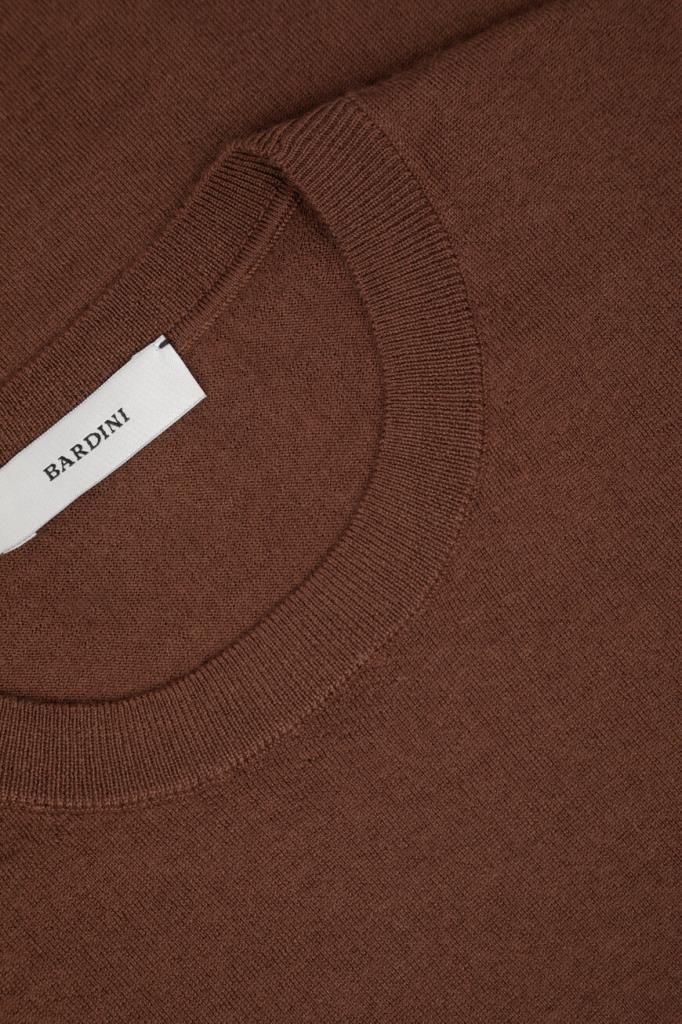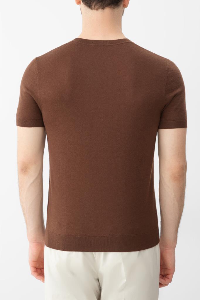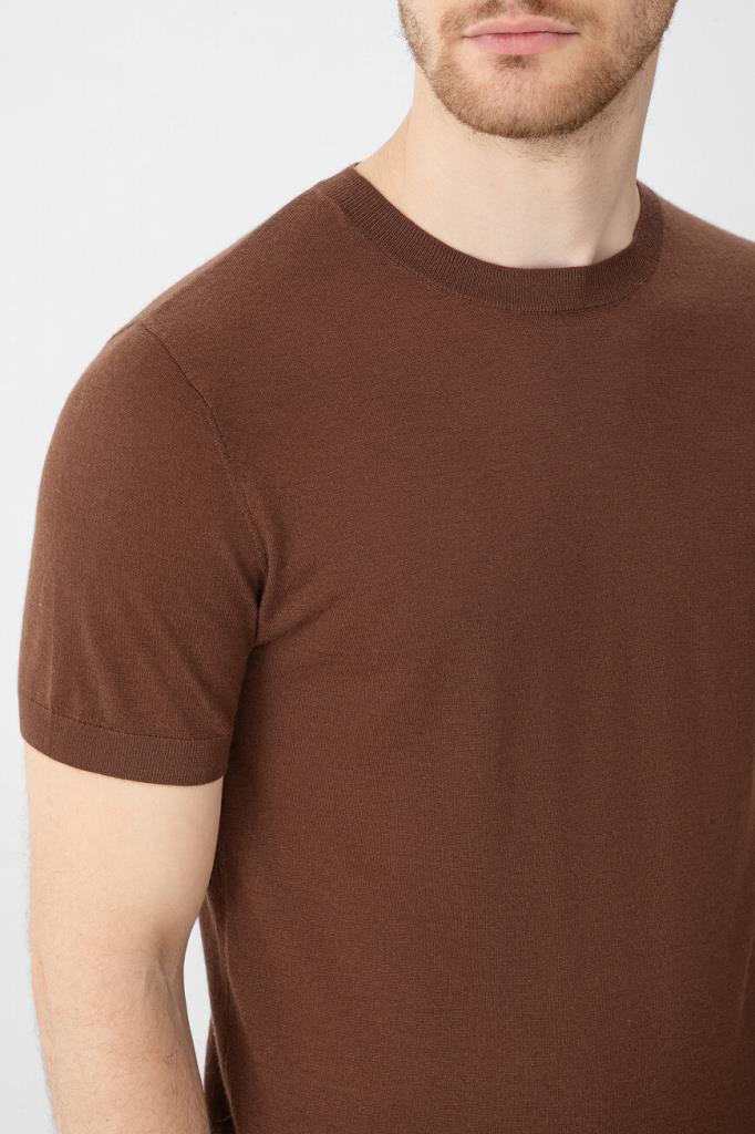 Коричневая футболка-джемпер от Bardini выполнена лицевой гладью. Для создания модели без знакового декора выбран мягкий кашемир. Комфорт и удобство в носке обеспечивают широкий эластичный пояс и манжеты-резинки. Изделие выверенного кроя может стать ключевым элементом мужского casual-образа.