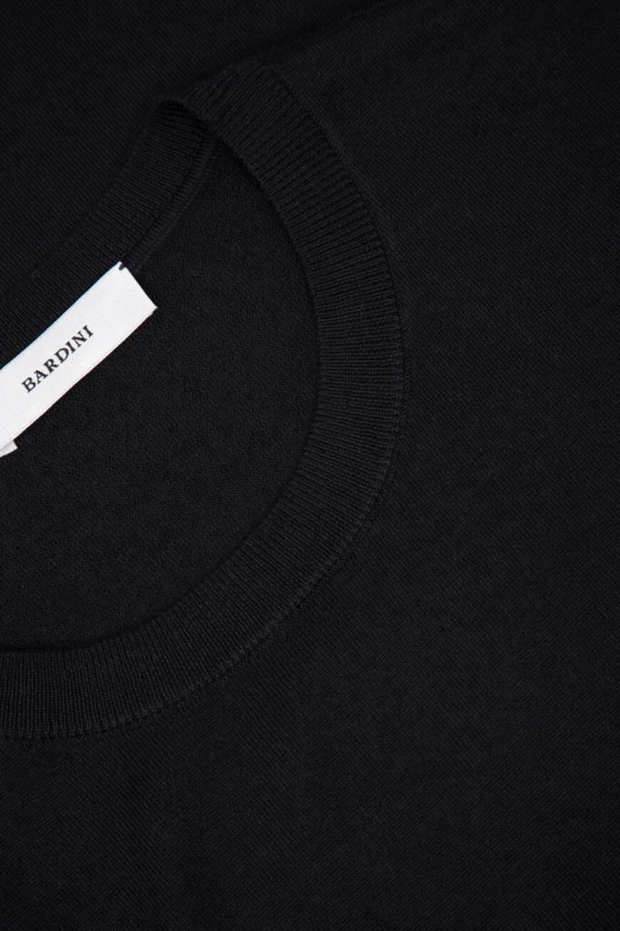 Вязаная футболка-джемпер прямого силуэта от Bardini. Для производства изделия базового оттенка используется мягкий кашемир. Характерными особенностями модели являются чулочная вязка и отсутствие знакового для бренда декора, что делает её ещё более универсальной.