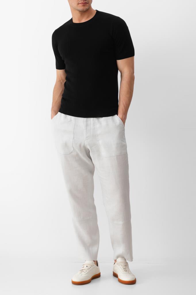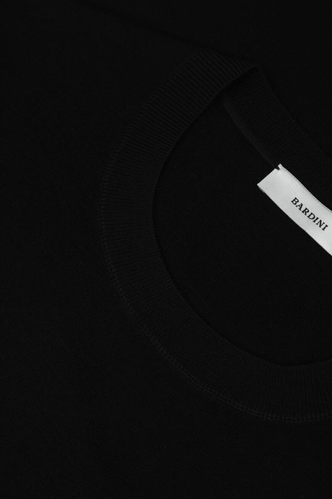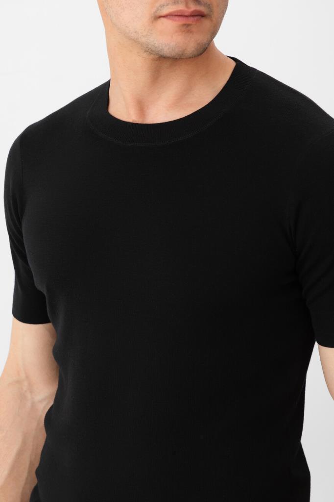 Шерстяная футболка чёрного цвета от Bardini. Изделие отличается выверенным по фигуре кроем и наличием коротких рукавов. Модель впишется в разные образы и как самостоятельный верх, и в качестве нижнего слоя в сочетании с другим трикотажем или пиджаком.