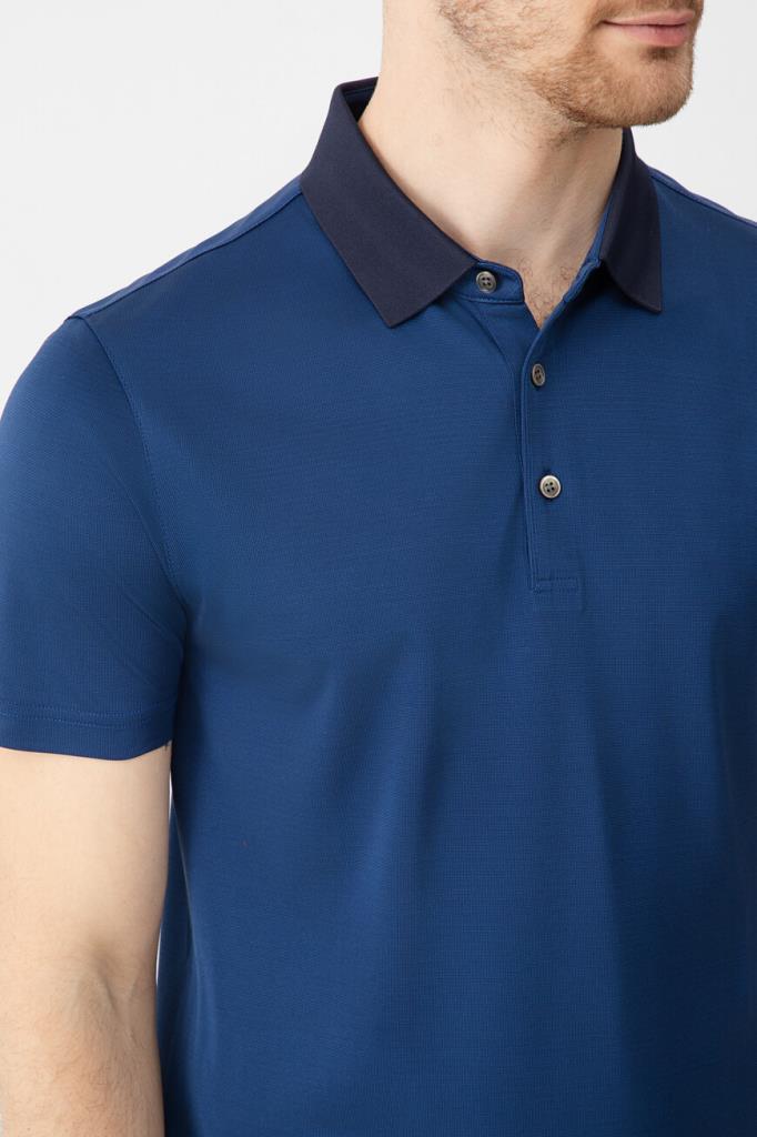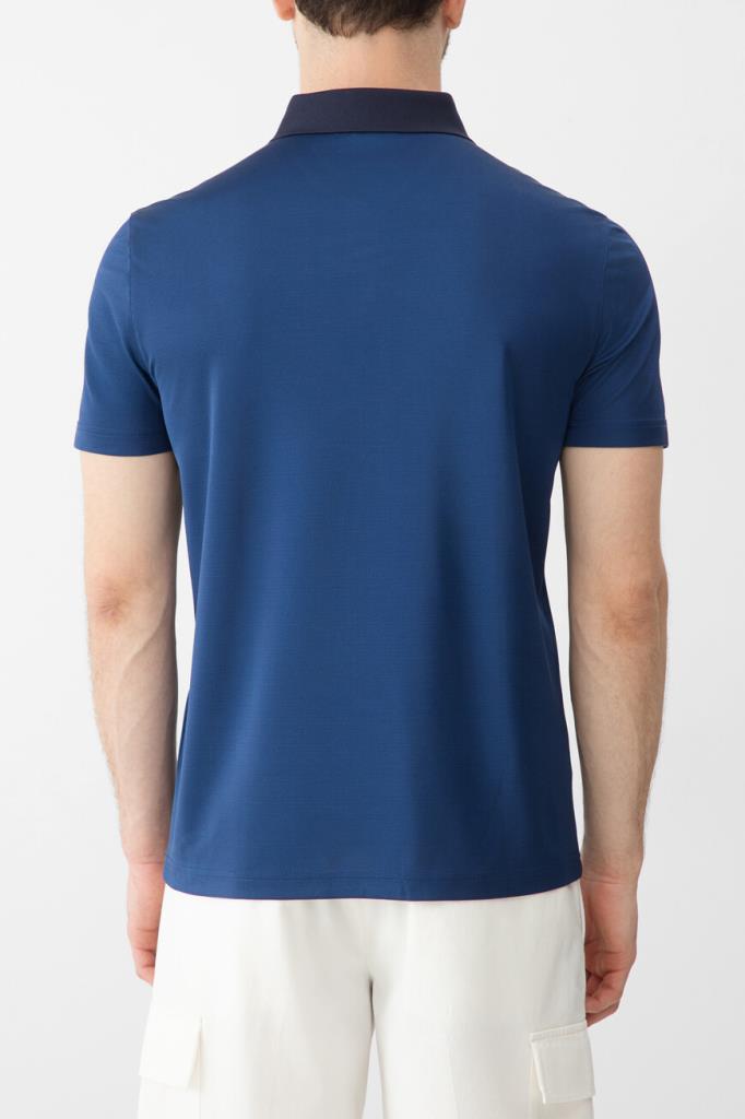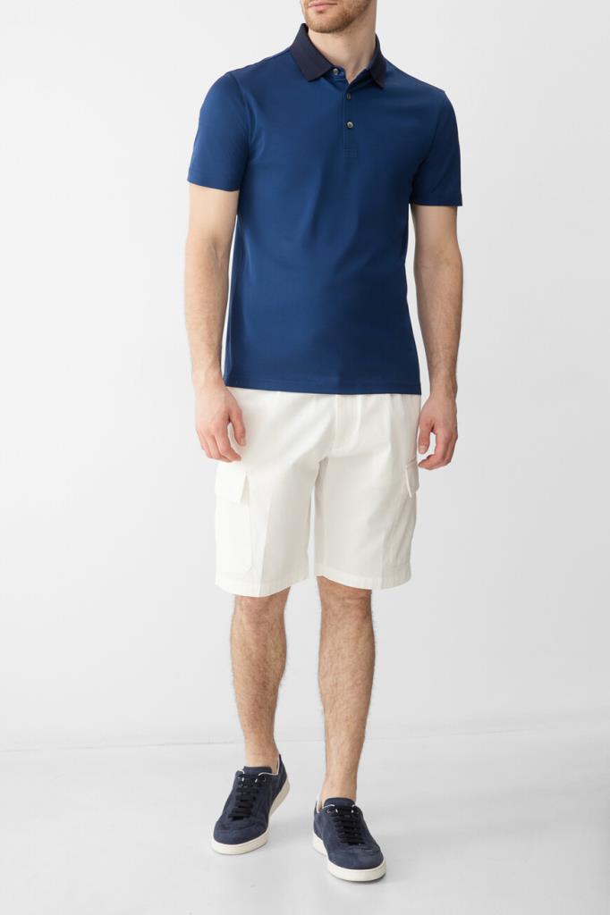 Шелковое поло Bardini с тёмно-синим отложным воротником в резинку. Для производства изделия синего цвета используется тонкий и при этом прочный материал, поэтому оно получилось лёгким и исключительно приятным на ощупь. Модель с короткими рукавами, выполненная из такого материала, не пилингуется и не теряет форму со временем.
