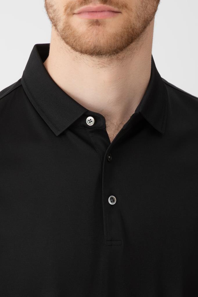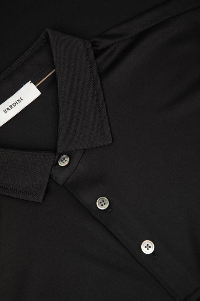Поло Bardini с изящными неглубокими разрезами снизу по бокам. Для изготовления повседневной модели прямого силуэта выбран гладкий шёлк. Благодаря добавлению небольшого количества эластичных волокон в состав материала изделие хорошо тянется и не сковывает движения. Декором выступает тональная фактурная строчка-окантовка на отложном воротнике.