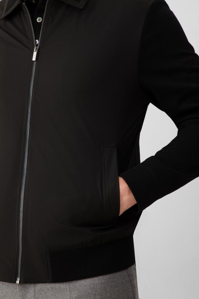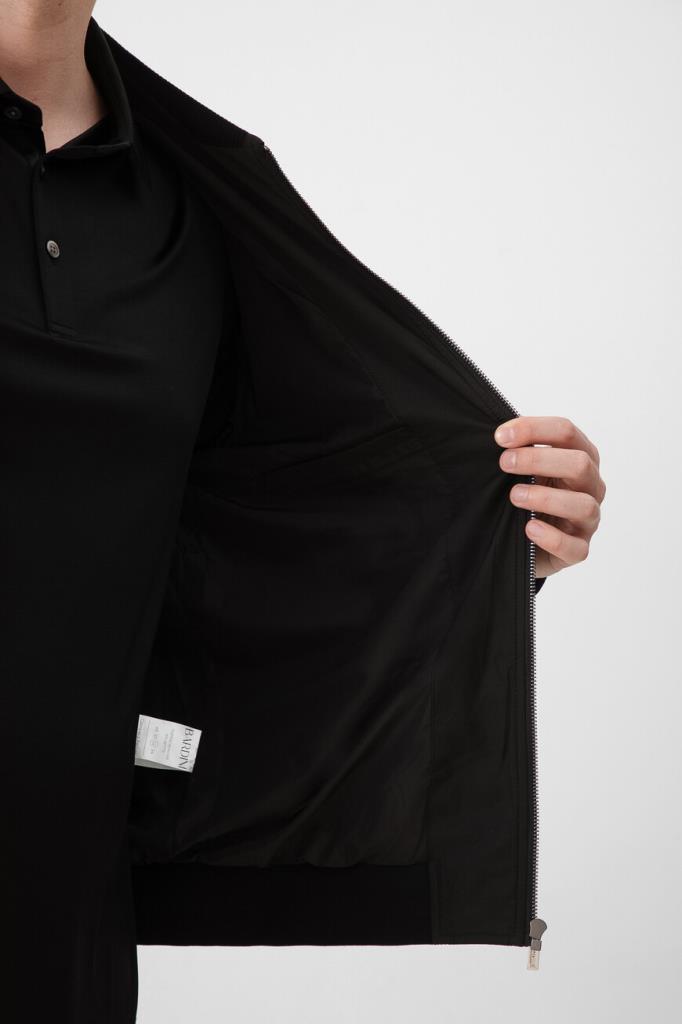 Чёрная куртка Bardini станет завершающим элементом сезонных комплектов. Для пошива изделия с длинными вязаными рукавами используется прочный полиэстер. Отложной воротник, манжеты и широкий пояс дополнены эластичными вставками в тон. Атрибутом Дома является гравировка логотипа на металлическом пуллере молнии.
