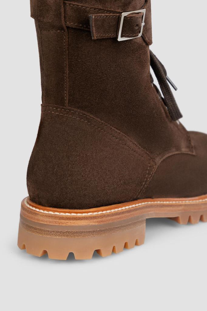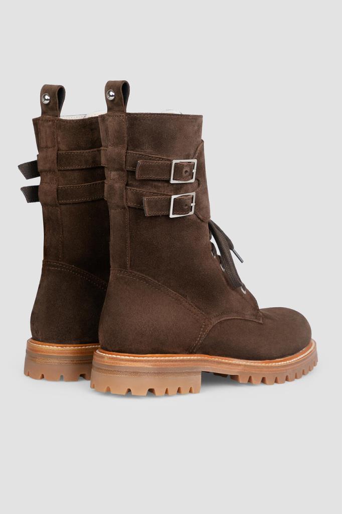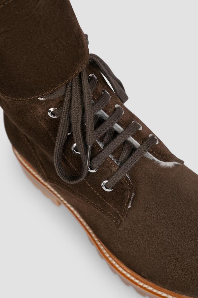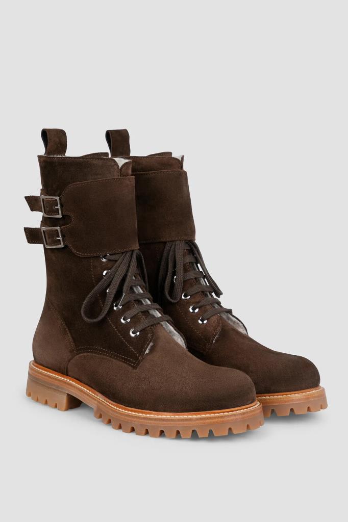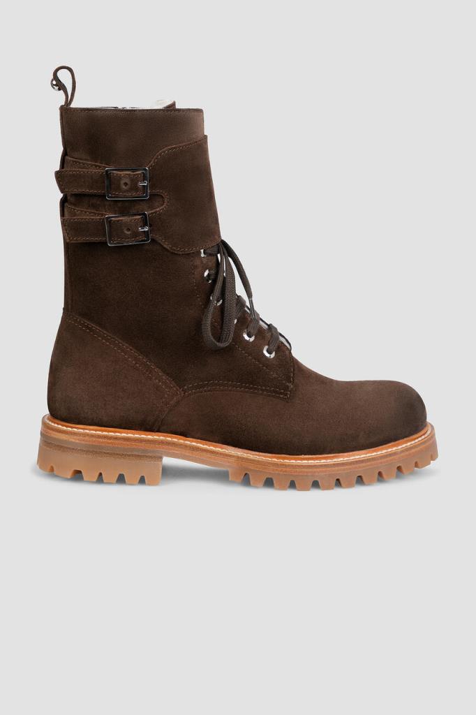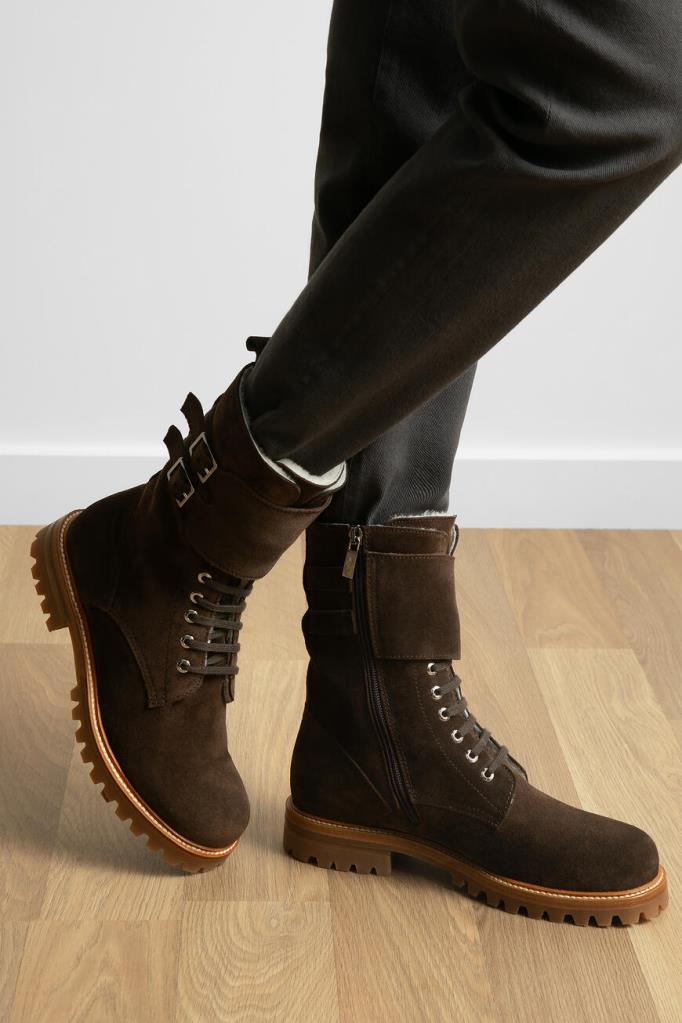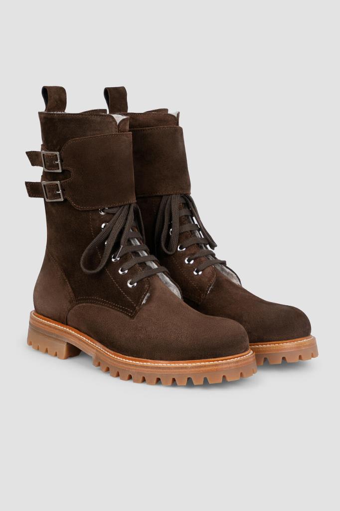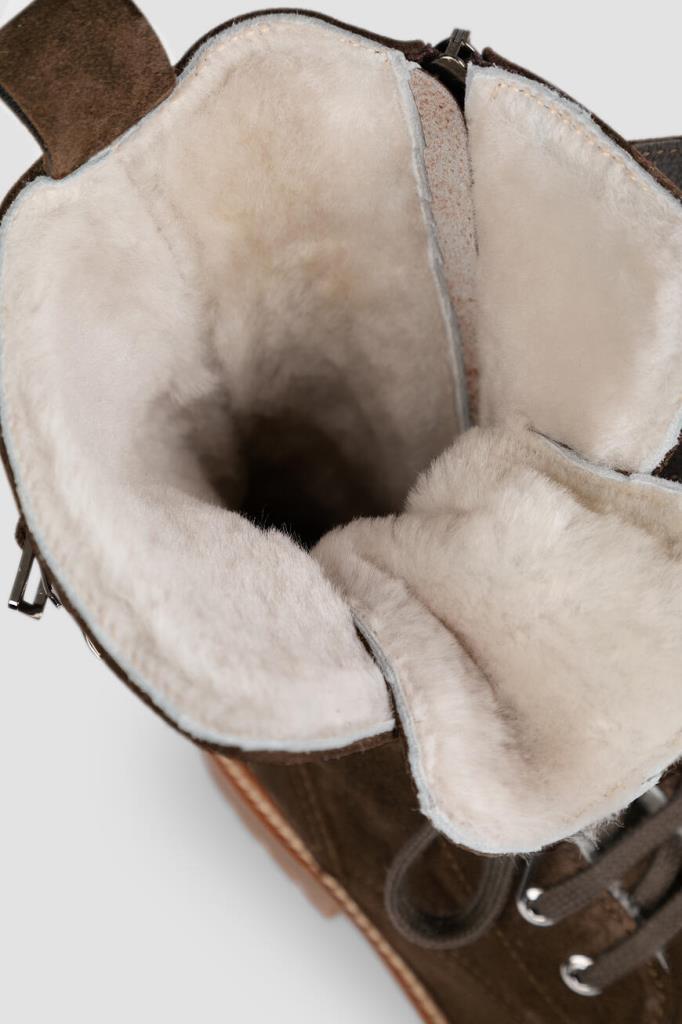 Тёмно-коричневые ботинки Kiton из мягкой фактурной замши. Отличительная особенность - внутренняя отделка из натурального меха ягнёнка.