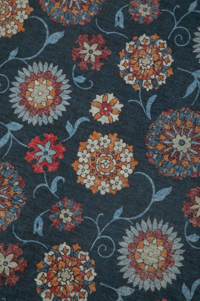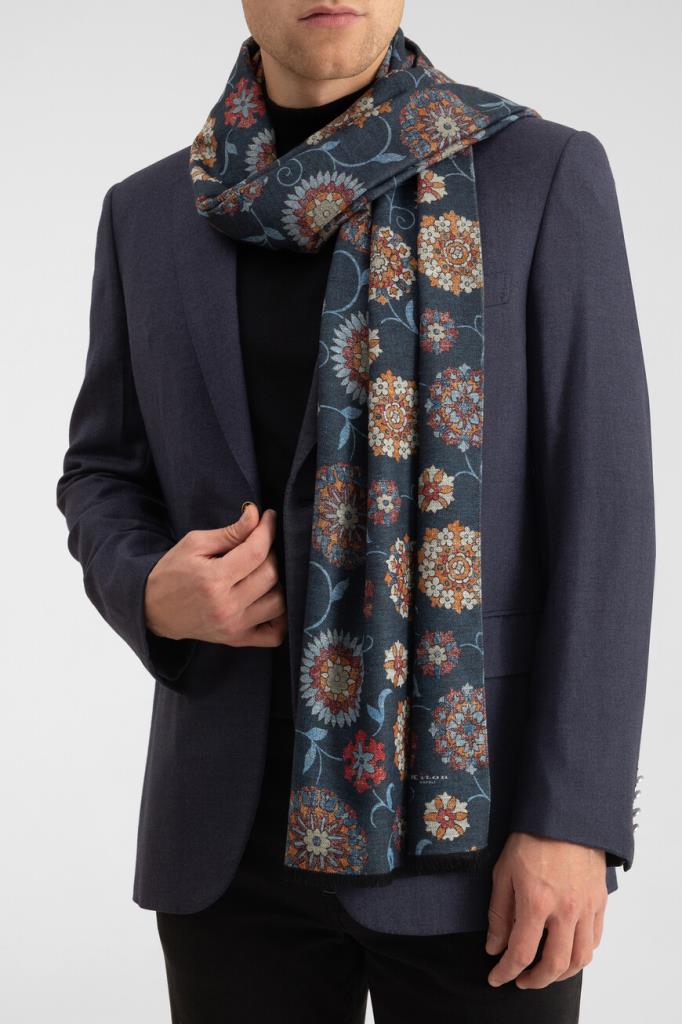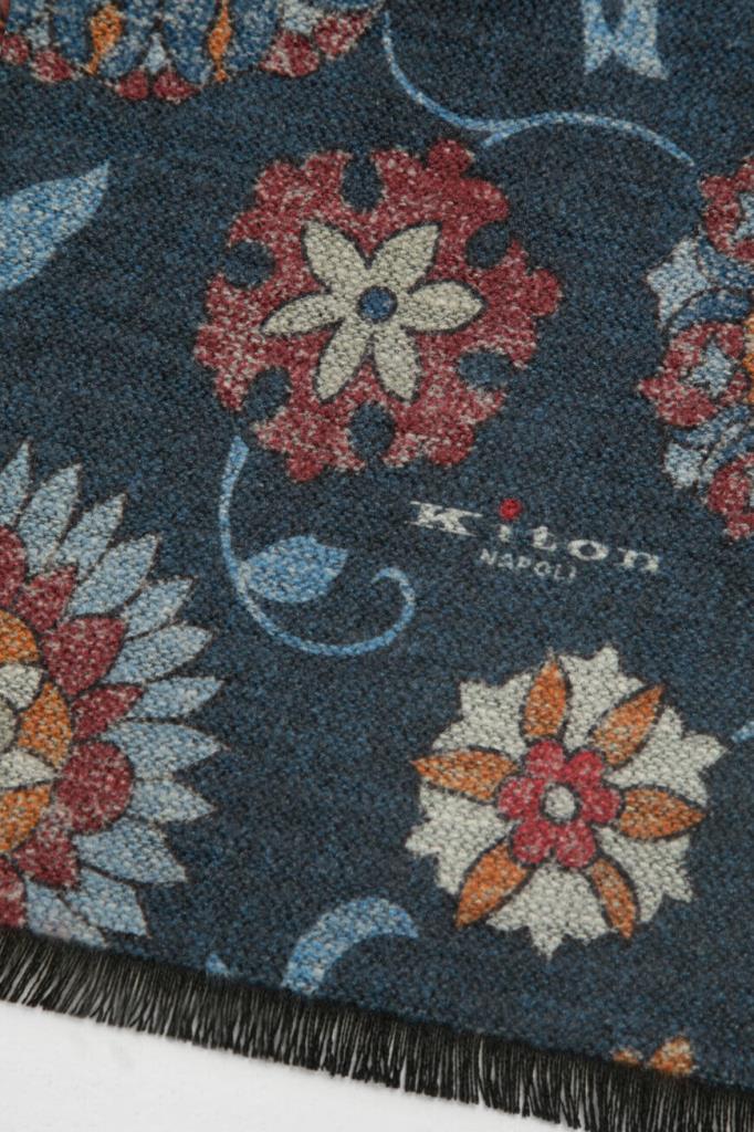Шелковый шарф Kiton с цветочным принтом. Отличительная деталь - логотип бренда.