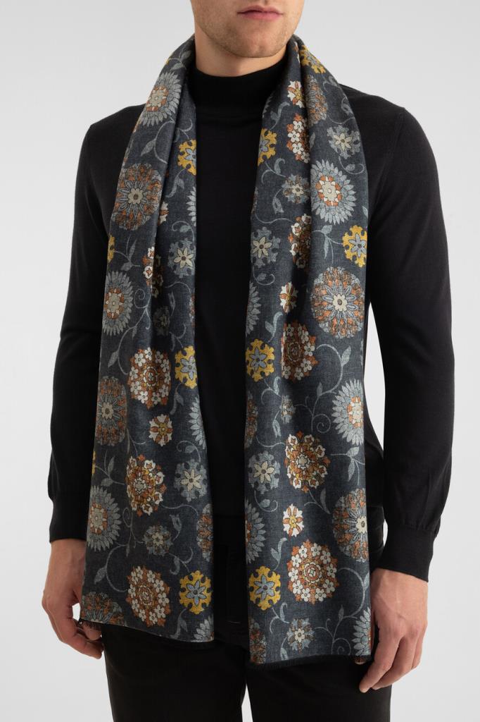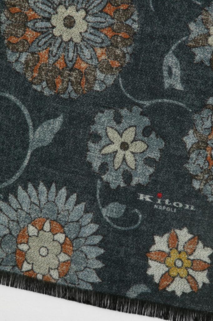 Шарф из мягкого гладкого шёлка от бренда Kiton. Отличительная особенность - цветочный принт.