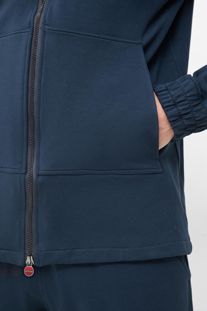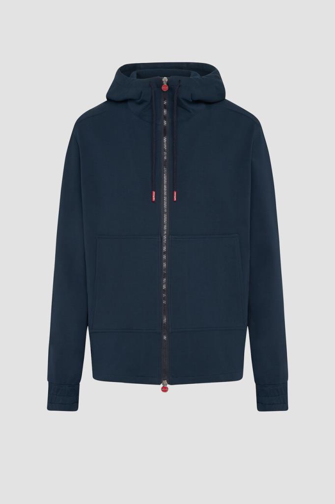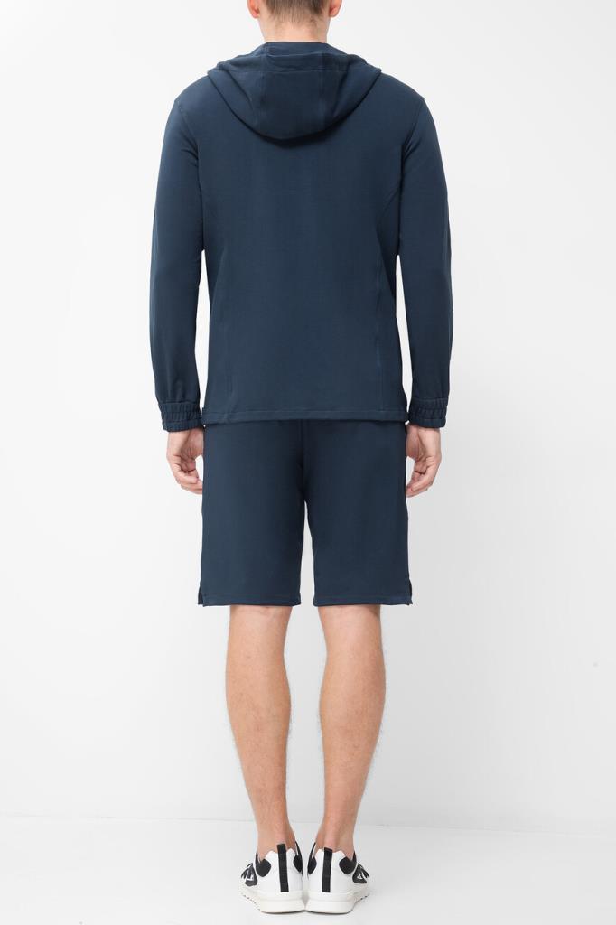 Синий спортивный костюм от бренда Kiton: куртка и шорты. Изделия изготовлены из мягкого хлопкового трикотажа стрейч, который хорошо пропускает воздух и немного тянется, делая посадку по фигуре максимально комфортной. Фасон спортивной куртки предполагает два крупных накладных кармана и чёрную застёжку-молнию с двумя брендированными бегунками, а шорты дополнены широким эластичным поясом-кулиской для регулировки посадки. Создайте органичный комплект в сочетании с комбинированными сникерами Дома с закрытой шнуровкой.
