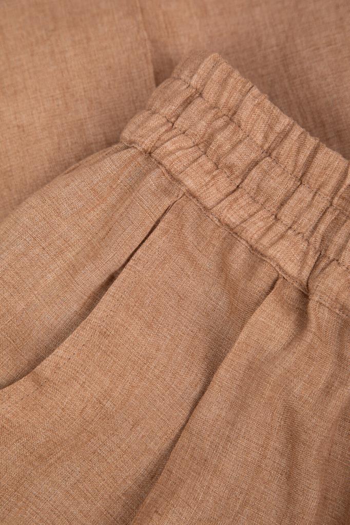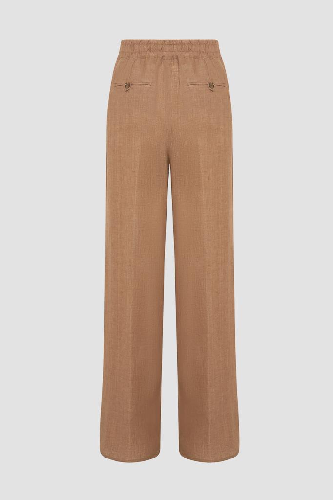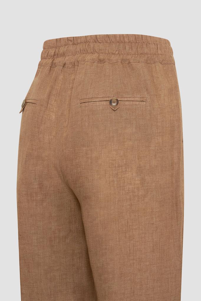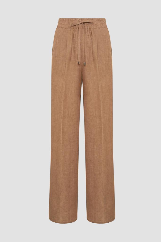 Льняные брюки Kiton идеальны для тёплой погоды. Лёгкий фактурный материал из лубяных волокон хорошо пропускает воздух и слегка охлаждает кожу, поддерживая терморегуляцию, а также хорошо держит четкость стрелок. Посадку на талии удобно регулировать шнуром, продетым в широкий эластичный пояс-кулиску. Изделие можно носить в комплекте с платьем из той же коллекции.