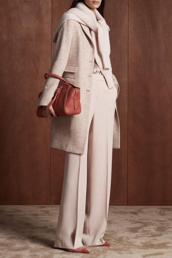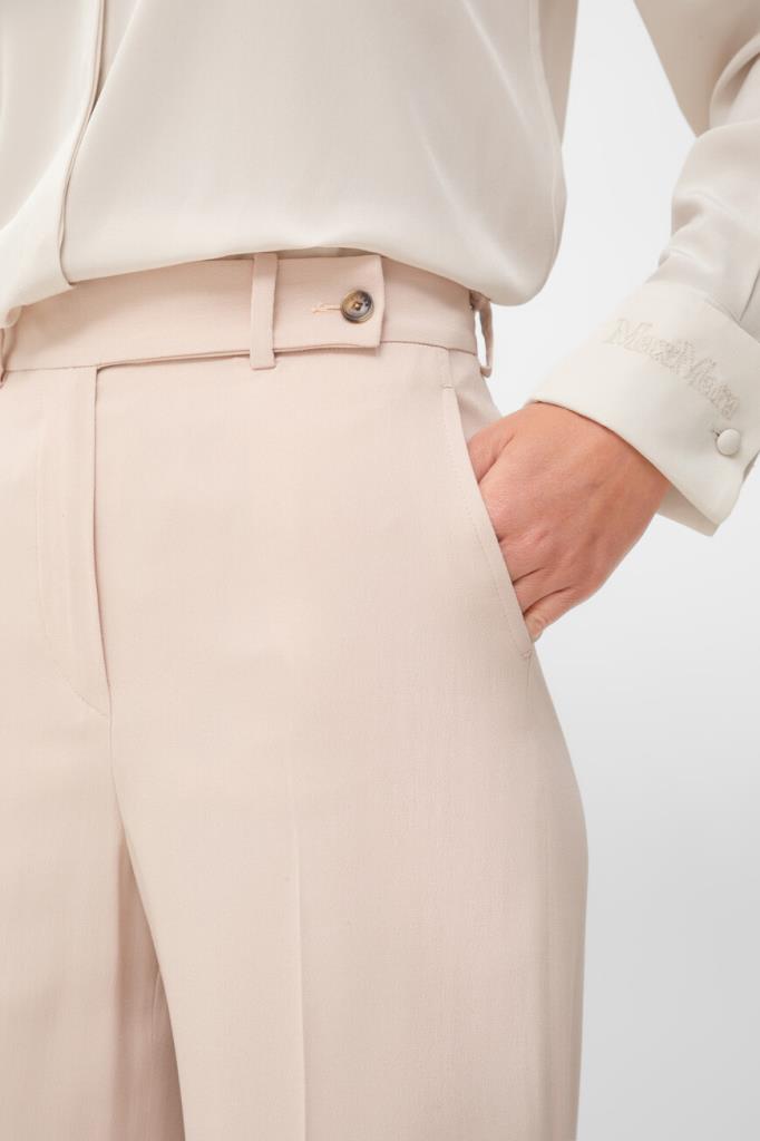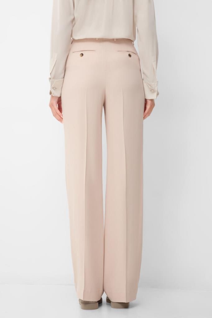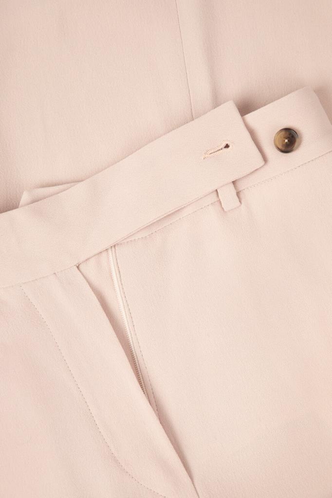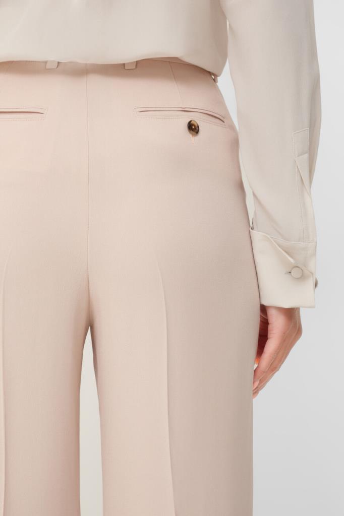 Брюки бледно-розового оттенка от бренда Kiton. Для пошива модели с четырьмя прорезными карманами используется мягкий трикотаж на основе прочного вискозного волокна и ацетата. Изделие с отглаженными стрелками приятно ощущается на коже и обеспечивает свободу движения за счёт прямого силуэта.