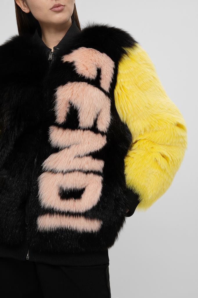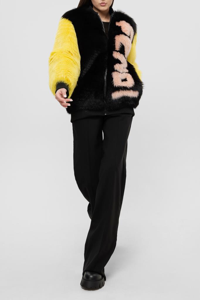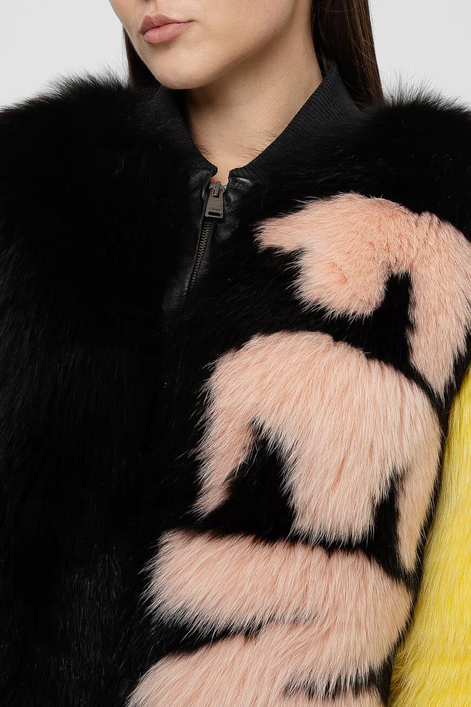 Шикарная женская меховая куртка-бомбер от итальянского модного дома FENDI . Модель выполнена из натурального лисьего меха с длинным густым ворсом. Лисий мех считается наиболее эффектным. Густая подпушка хорошо сохраняет тепло тела. При правильно уходе изделие прослужит не менее пяти сезонов. Модель имеет классический прямой силуэт, воротник, так же как манжеты рукавов и низа выполнены из плотного гладкого трикотажа. Застёгивается на прочную металлическую молнию. Планка молнии оформлена широкими полосками натуральной кожи, которая предохраняет мех от попадания в застёжку. В боковых швах располагаются два функциональных прорезных кармана. Куртка выполнена в контрастных тонах: черном и желтом. Грудь украшена крупной надписью в виде названия марки.