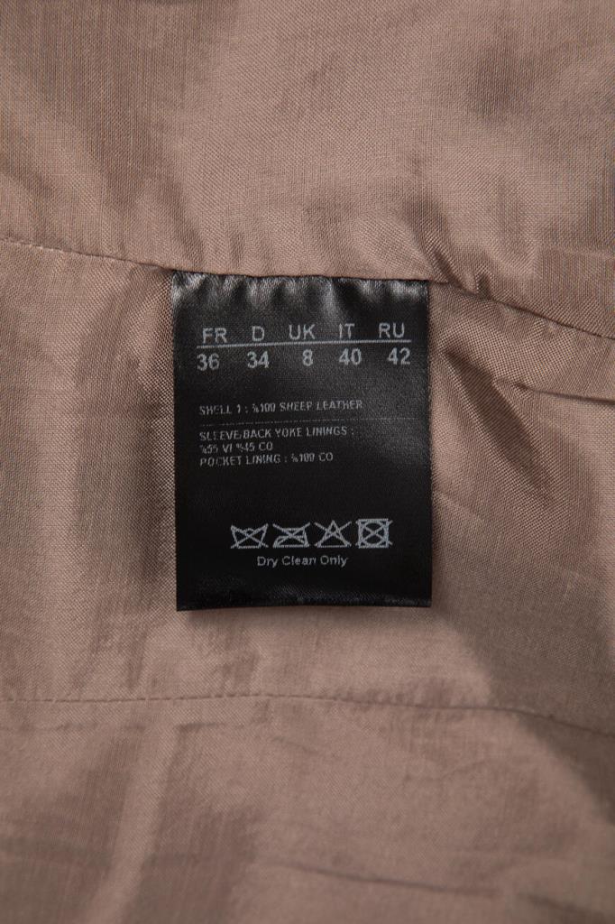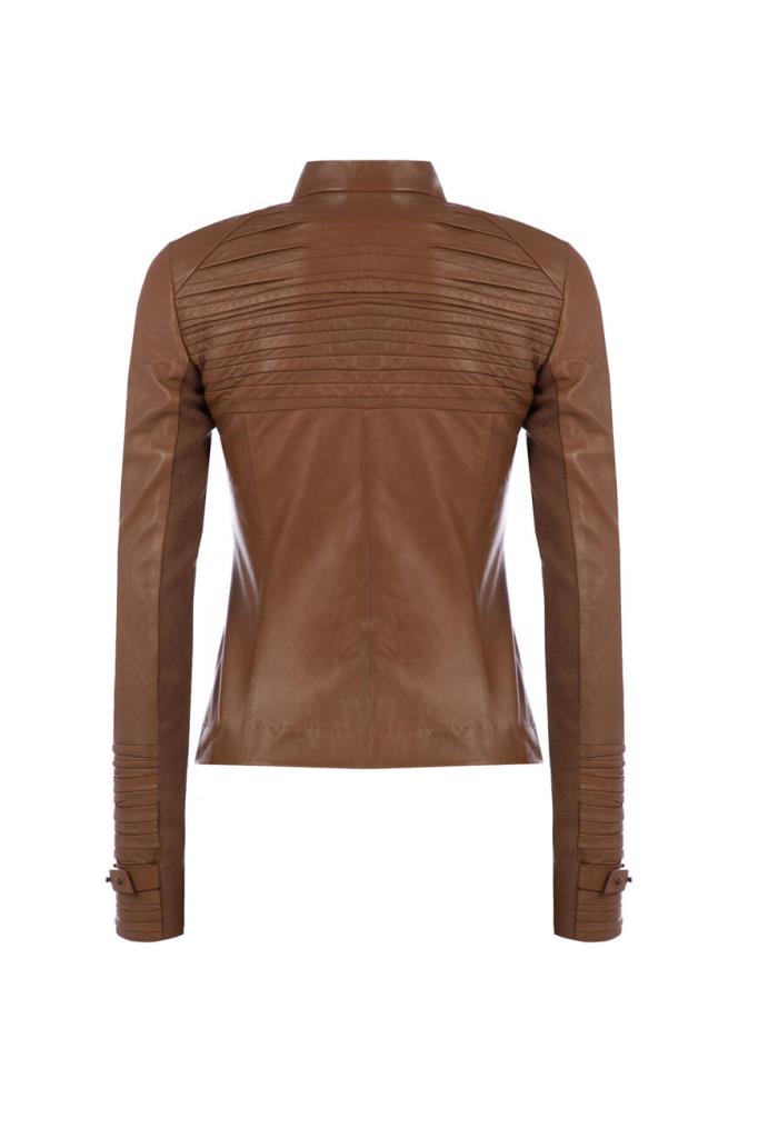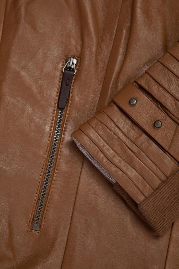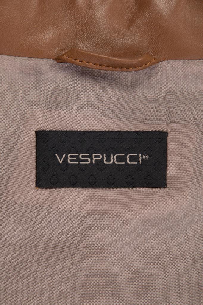 Коричневая куртка Vespucci выполнена из натуральной овчины. Отличительной особенностью модели стал геометричесий узор в виде рельефных полос спереди и сзади на уровне груди и на рукавах.