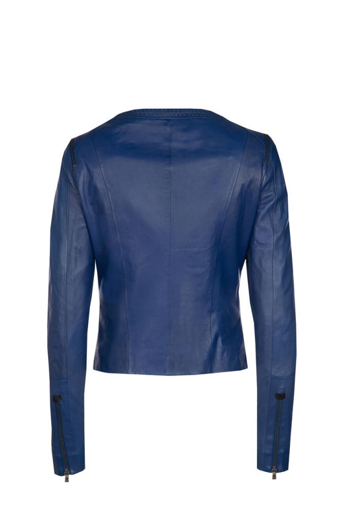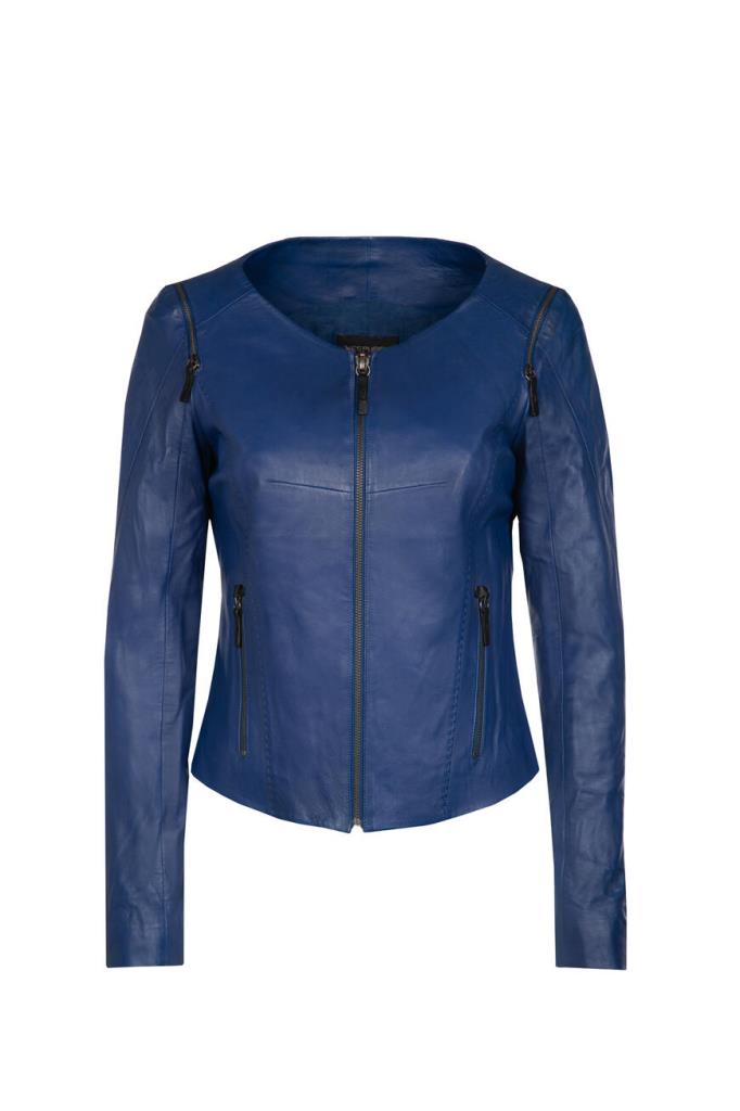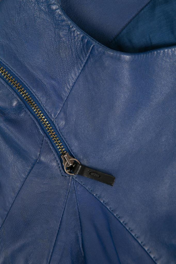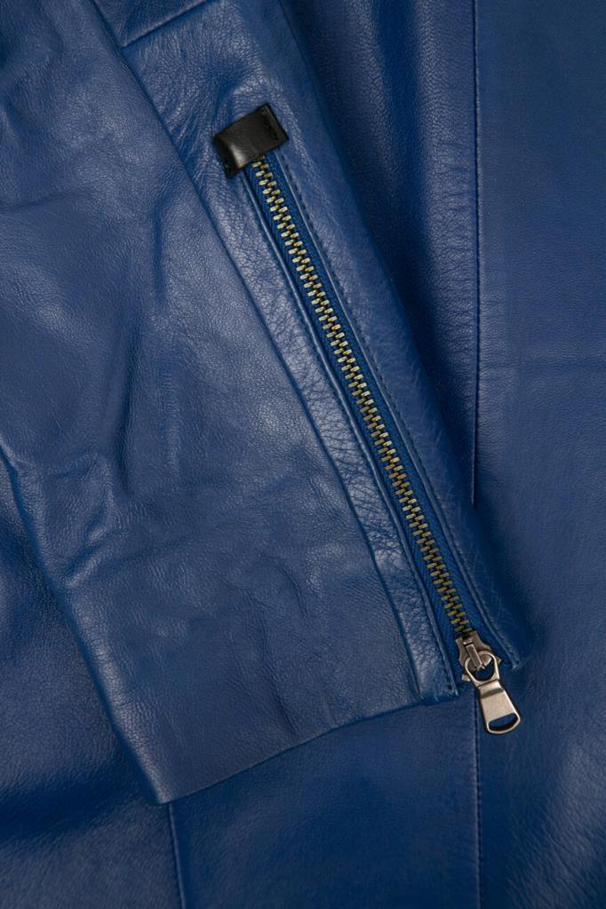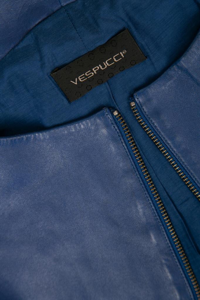 Стильная женская куртка от Vespucci выполнена из мягкой натуральной телячьей кожи изысканного насыщенного синего цвета и дополнена оригинальными молниями на уровне плеч.