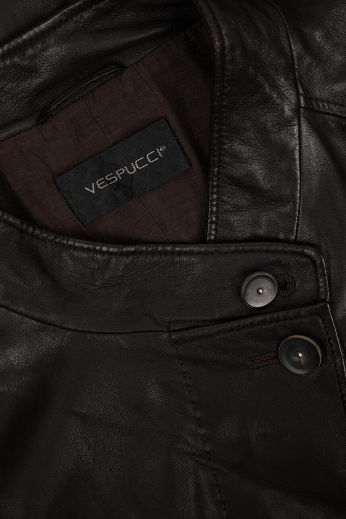 Стильная женская куртка Vespucci из мягкой натуральной гладкой кожи телёнка универсального чёрного цвета.