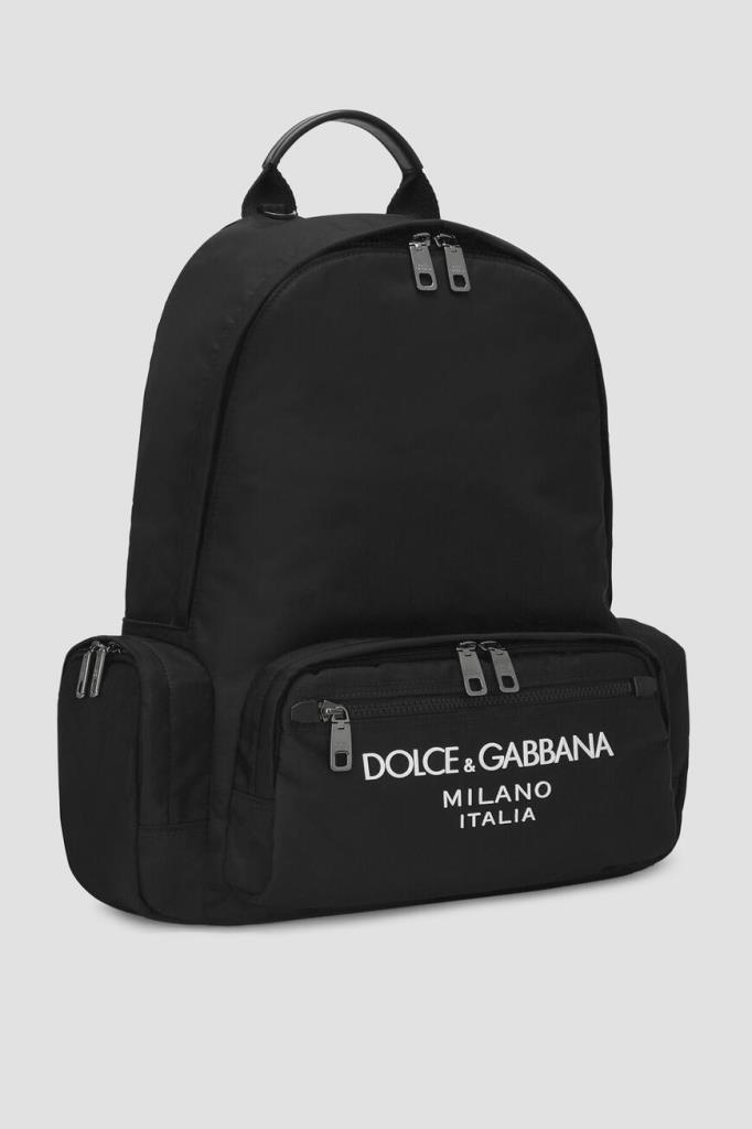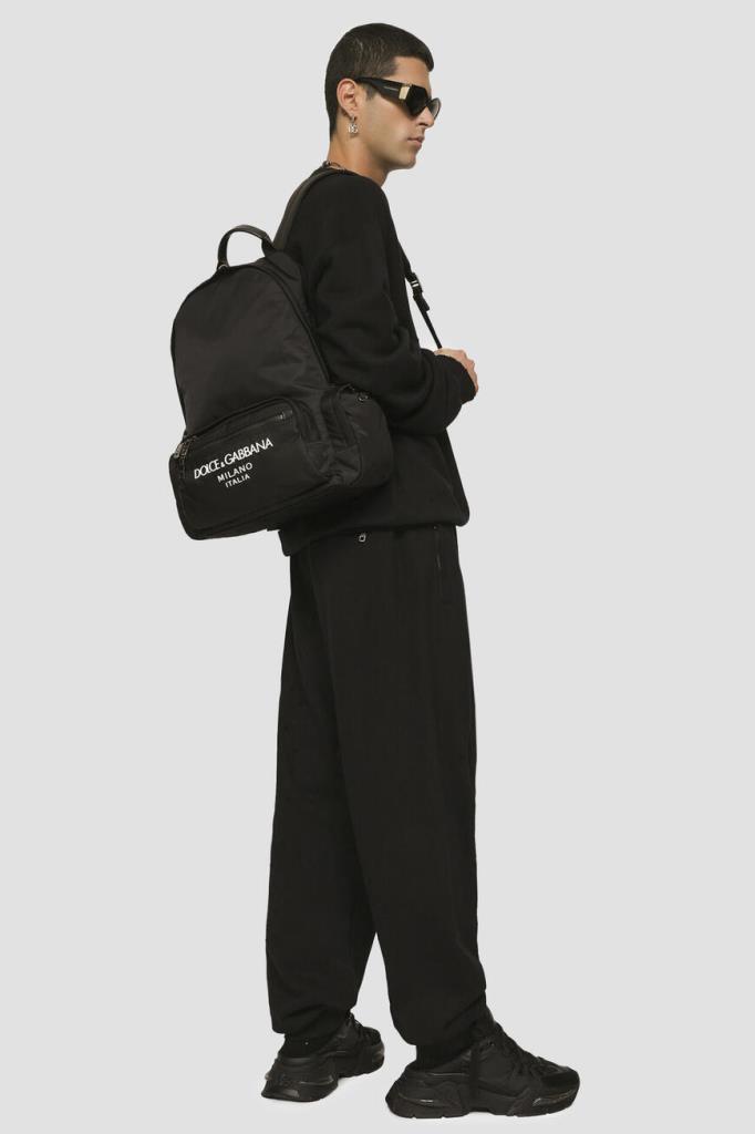 Рюкзак из линейки Nero Sicilia DNA от Dolce & Gabbana. Практичная и вместительная модель выполнена из прочного водоотталкивающего нейлона и украшена крупными прорезиненными надписью и логотипом Dolce&Gabbana Milano белого цвета на внешнем кармане спереди. Снизу в задней части рюкзака расположена вставка-нашивка с местом для подписи.