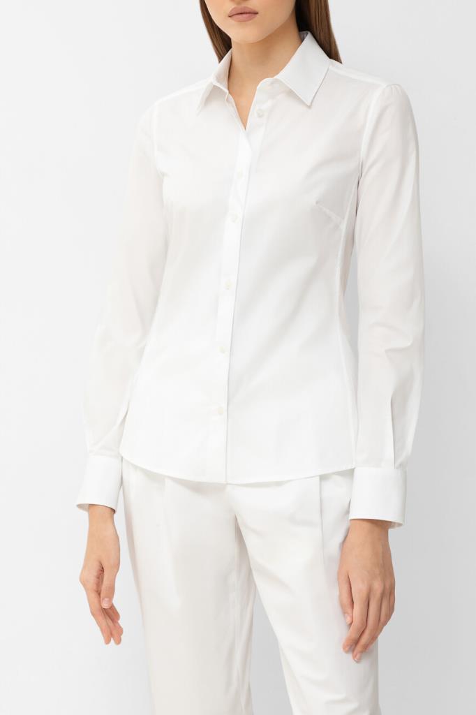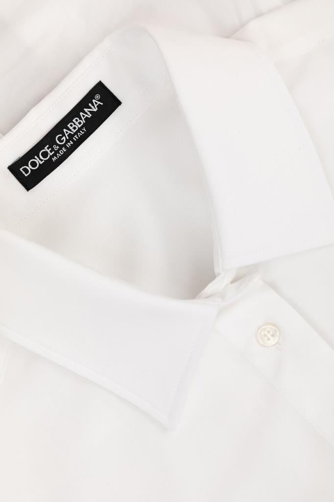 Приталенная рубашка Dolce & Gabbana является синонимом элегантности. В коллекции бренда сицилийские корни и искусный пошив смешиваются вместе, создавая обновлённую ДНК - утончённую и современную. Для создания модели выбран эластичный хлопковый поплин белого цвета. Это база для создания безукоризненных образов.